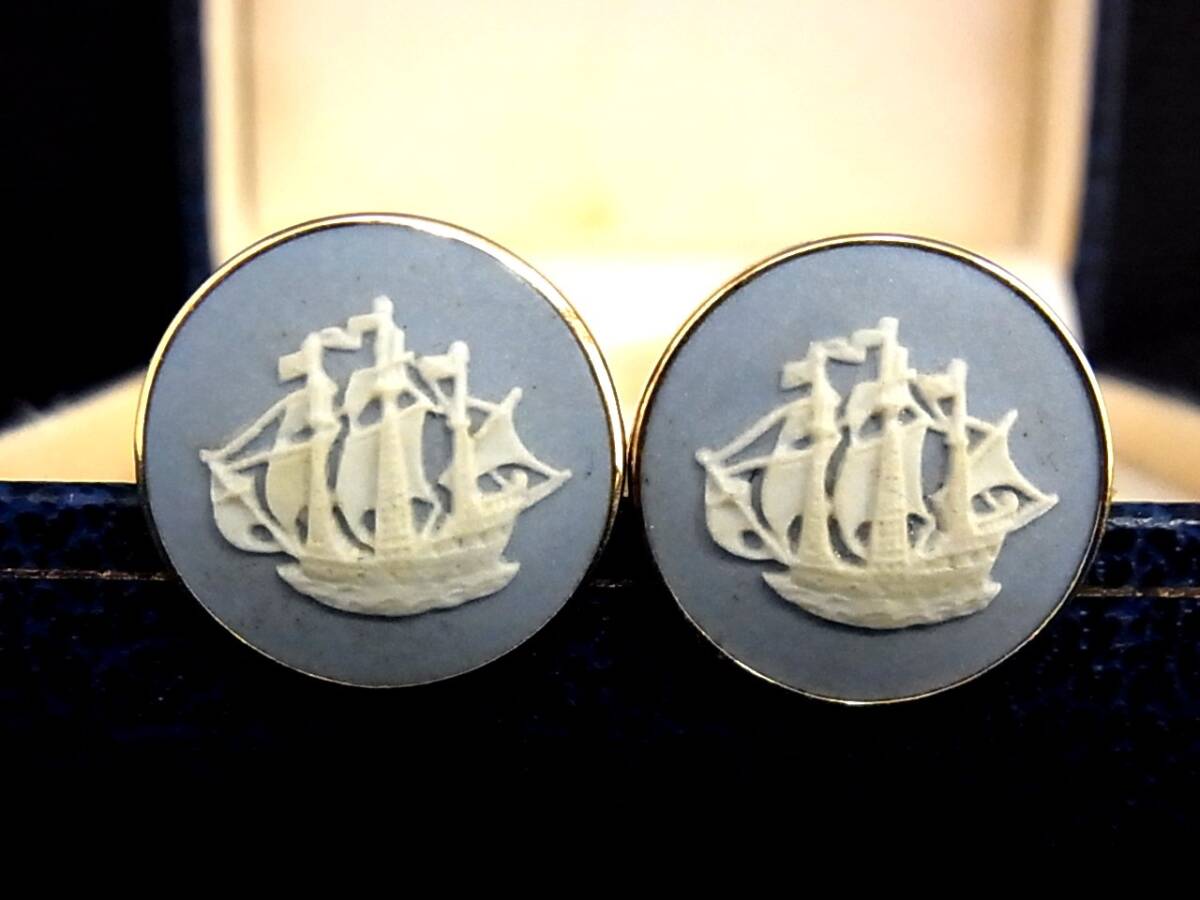 ■美品■№1041 ウェッジウッド 【ゴールド 水色 「船」】■ネクタイ ピン・タイピン♪