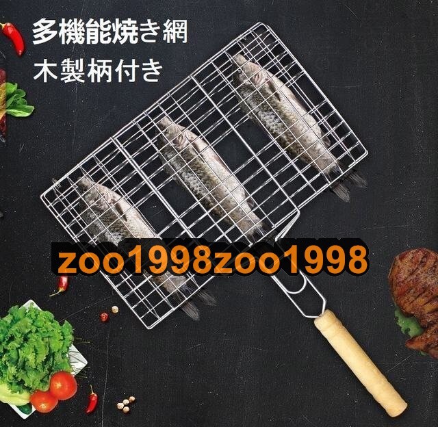 多機能焼き網 炭焼き 焼き網 炭火魚焼き器 焼き魚 木製柄付き バーベキュー 焼物用品 調理器具 ◆サイズ:(画像をご参考ください) ※寸法は手測りなので若干誤差がございますが、ご了承くださいません。 ◆材質:ステンレス