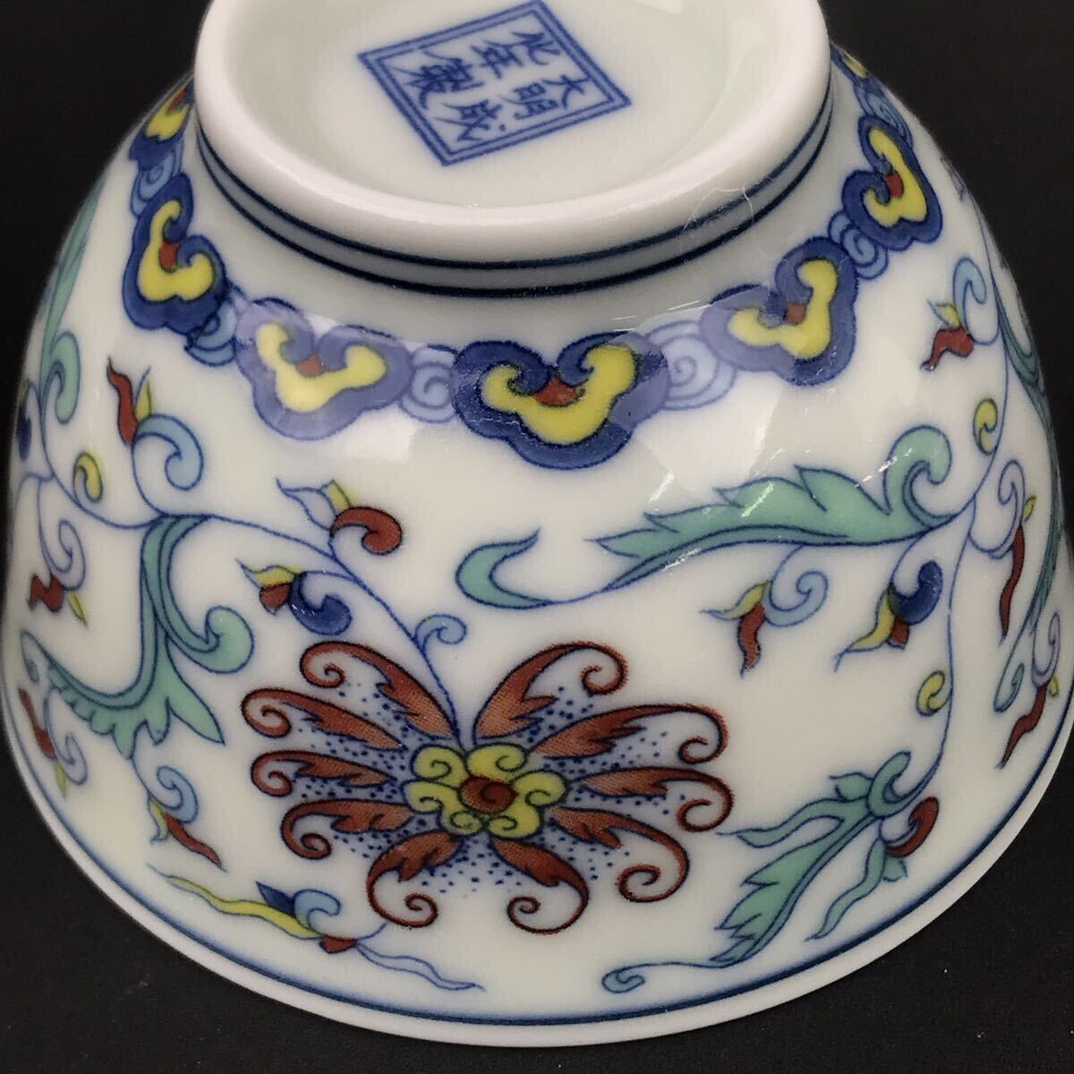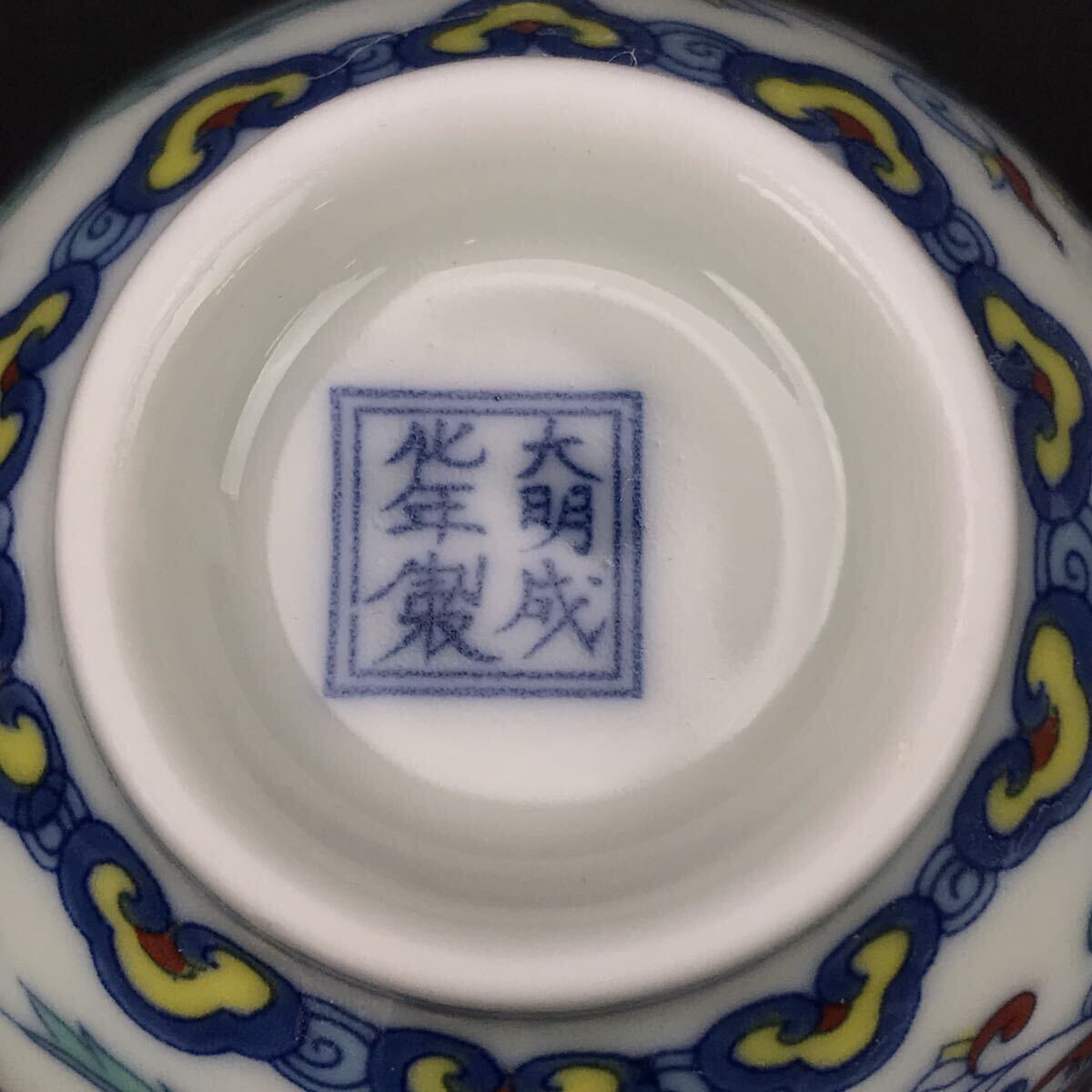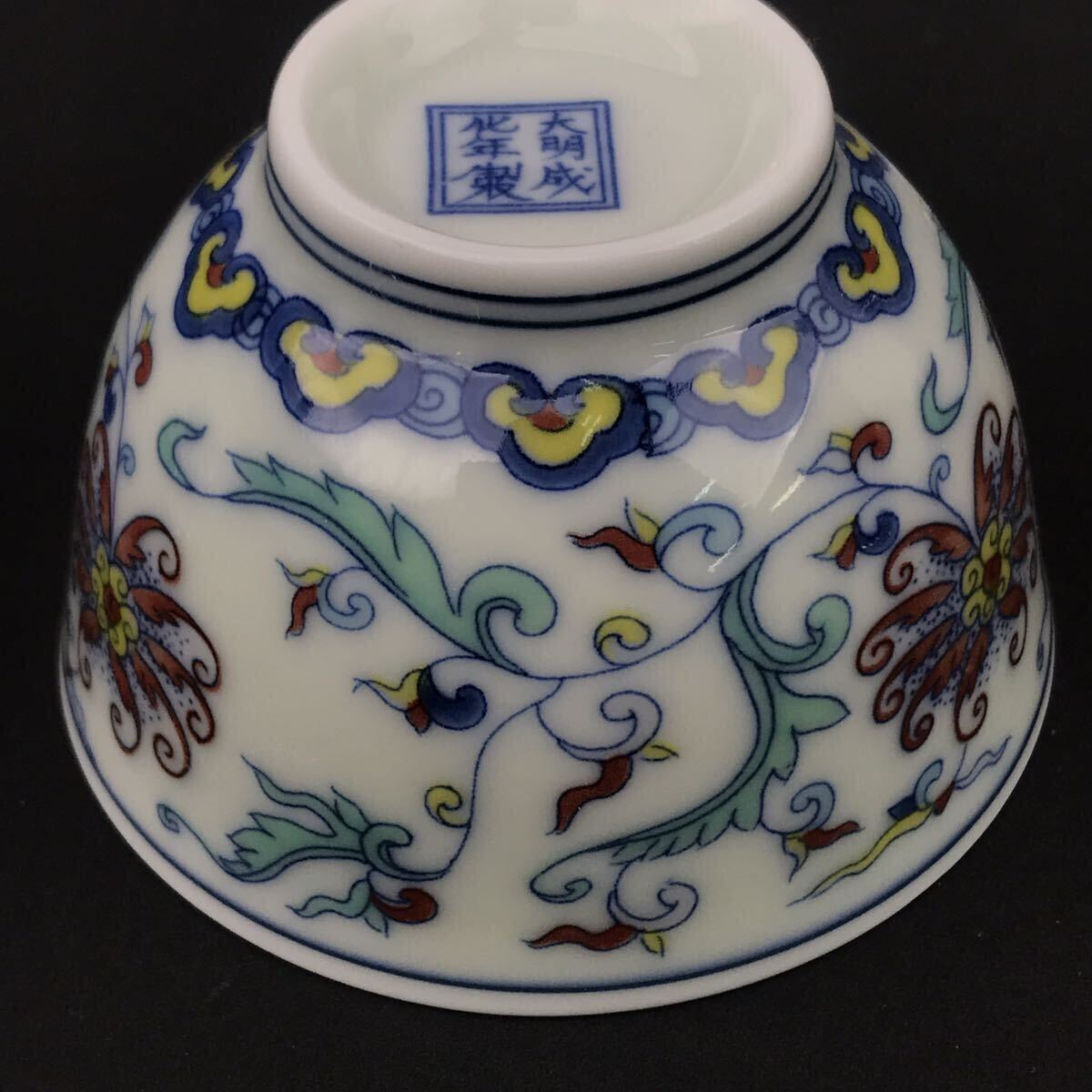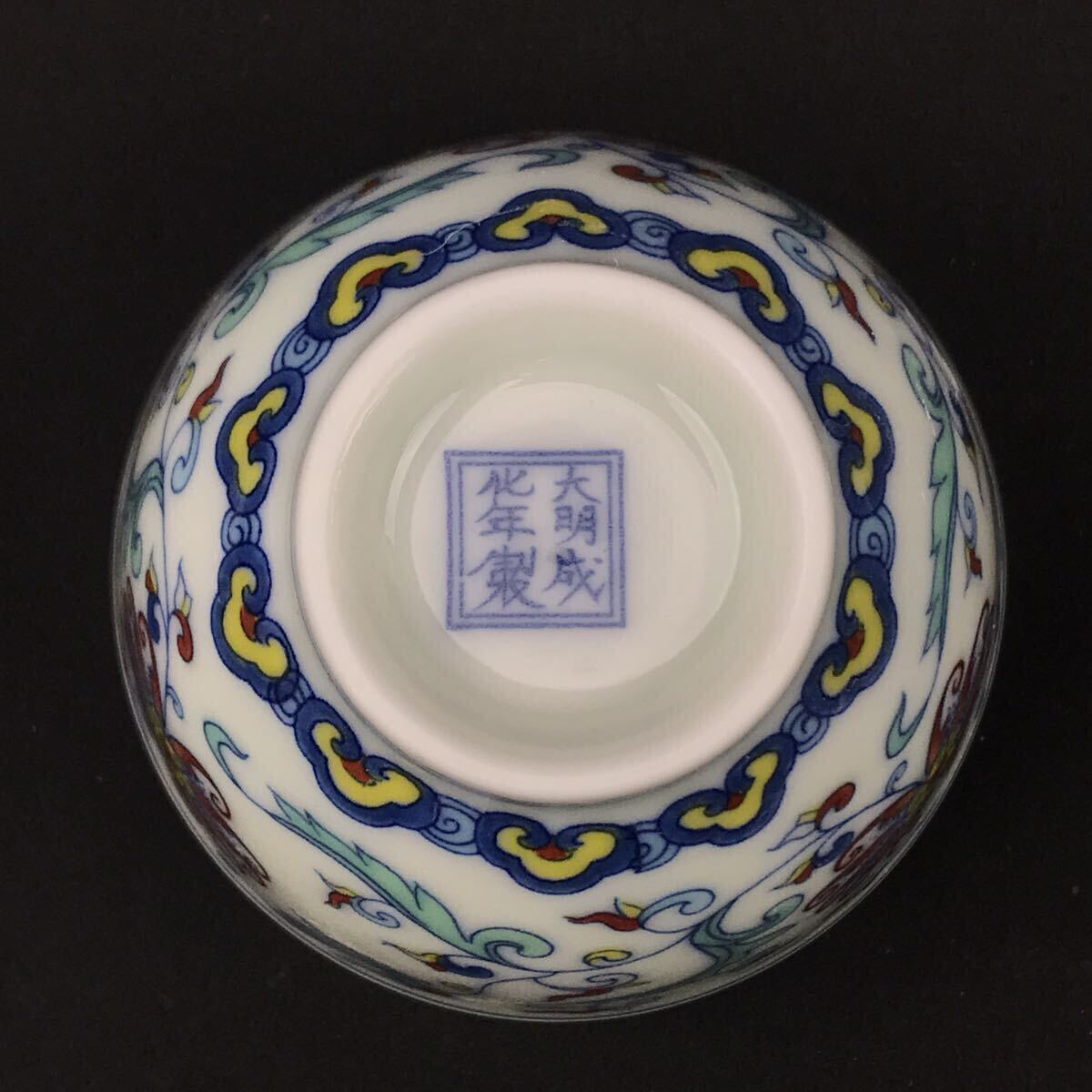 中国 大明成化年製 粉彩杯 時代物 湯呑 茶器 茶碗 煎茶道具 煎茶器 古玩