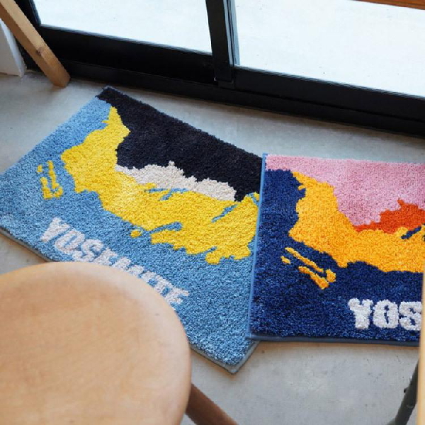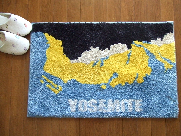 新品80×50cm☆YOSEMITEヨセミテ☆四角ラグマット青 アメリカ玄関マット バスマット アート ラグ アウトドア キャンプ マイクロファイバー