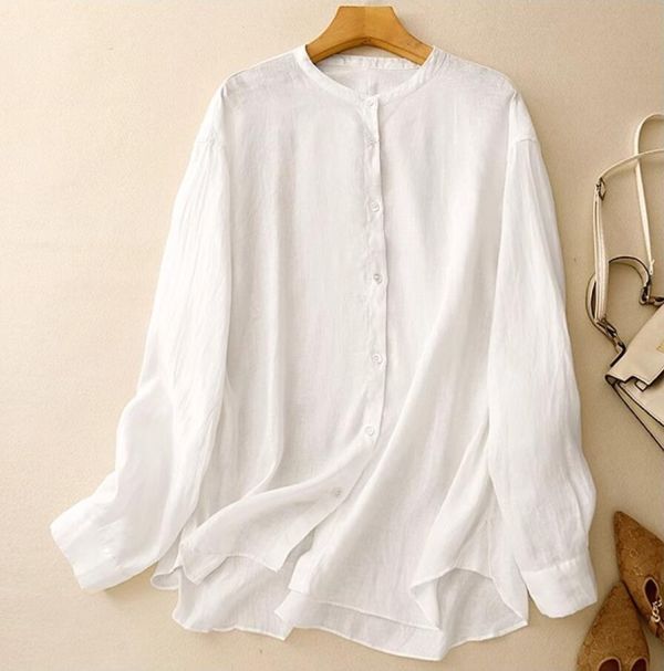 新入荷~カジュアル ゆったり チュニック シャツブラウス 大きいサイズ おしゃれ 長袖 無地 着痩せ 大人 かわいい トップス ~ホワイト~