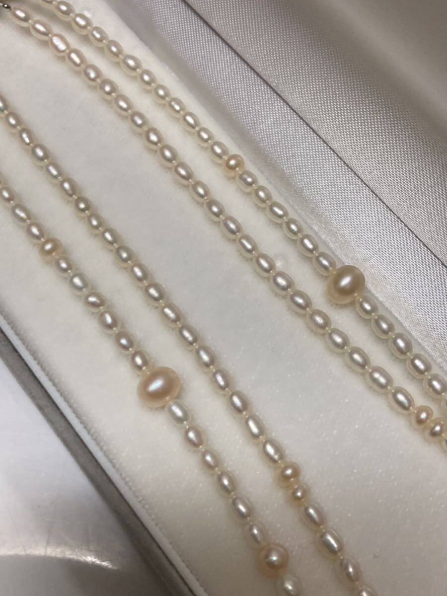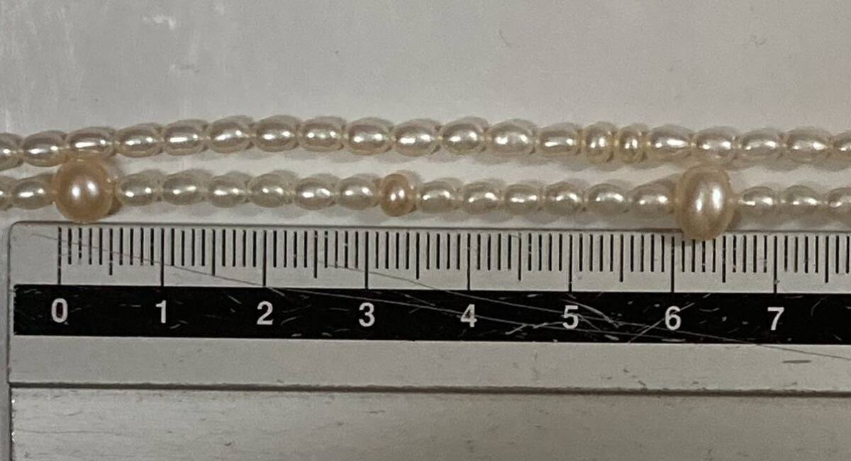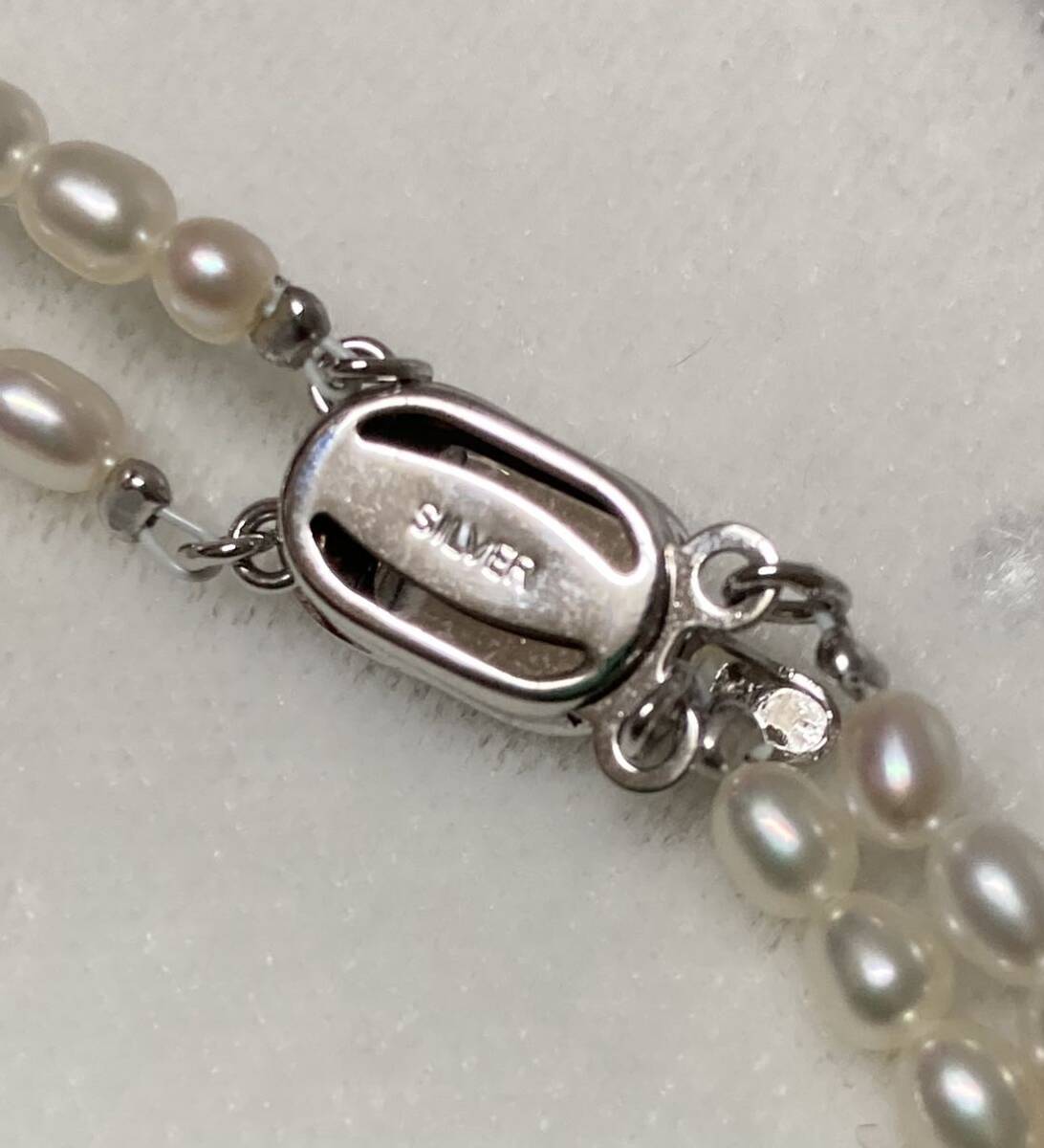 アコヤ 真珠 パール 二連 ネックレス ♪ SILVER 刻印 全長:約41cm 本真珠 ケース付 ライスパール 真珠 あこや ライス ピンク×ホワイト