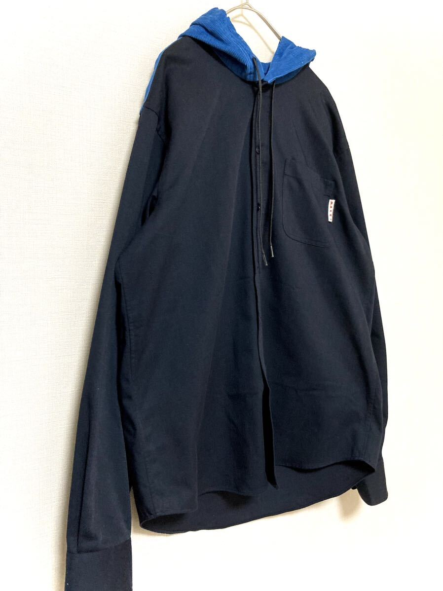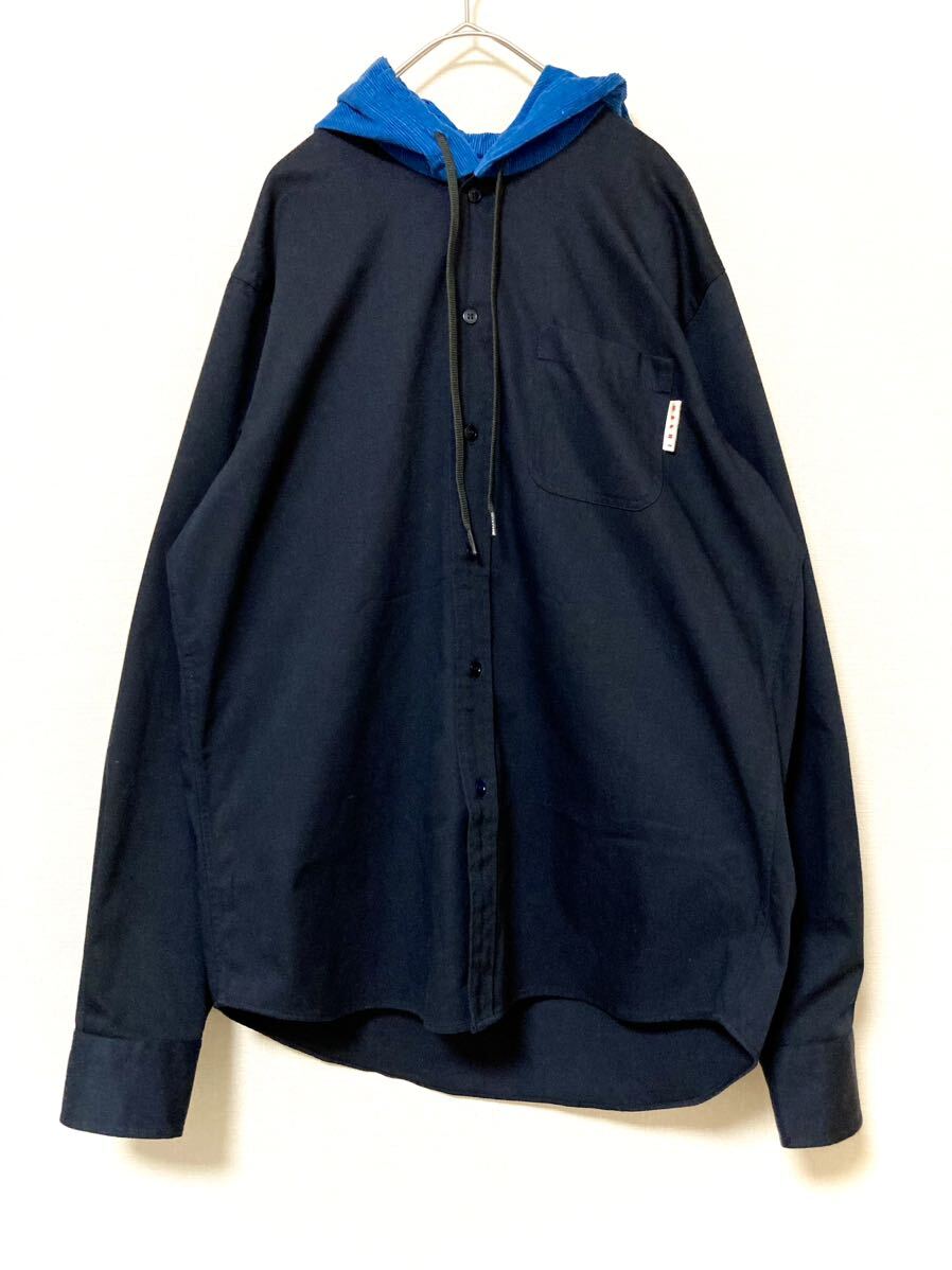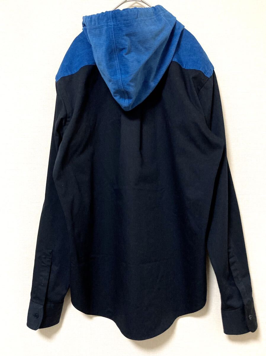 フードがコーデュロイ素材で切り替えられたカジュアルなシャツです。
