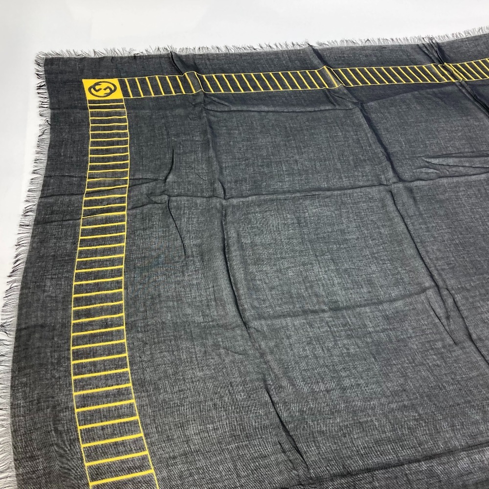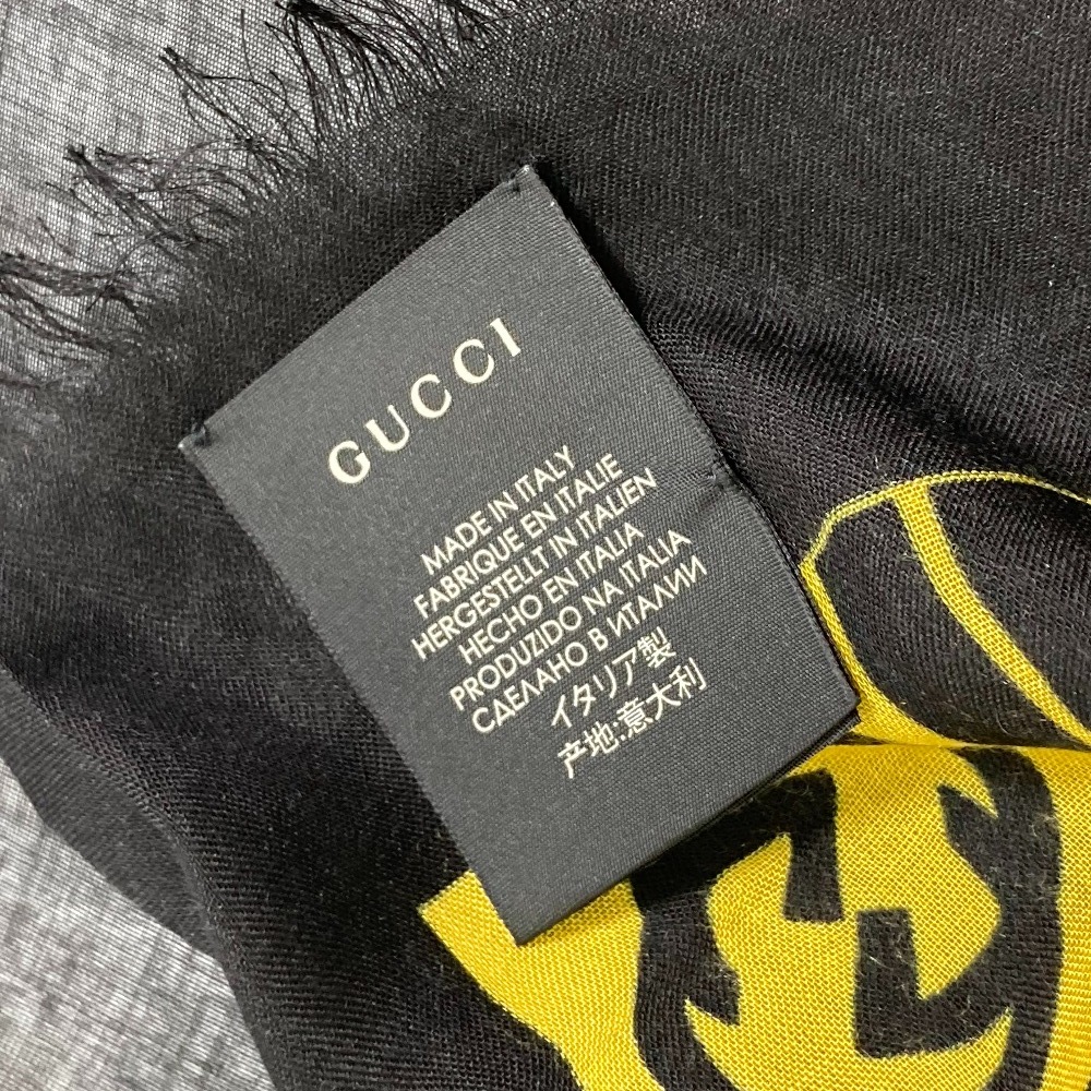 GUCCI グッチ 535071 アパレル MLBコラボ 大判ショール ストール レーヨン ブラック レディース【中古】未使用