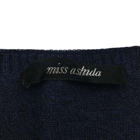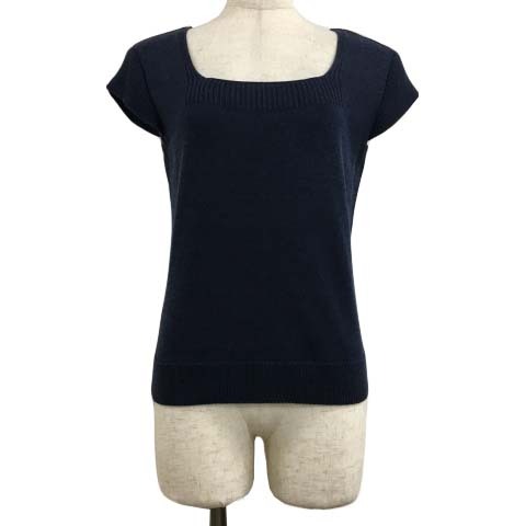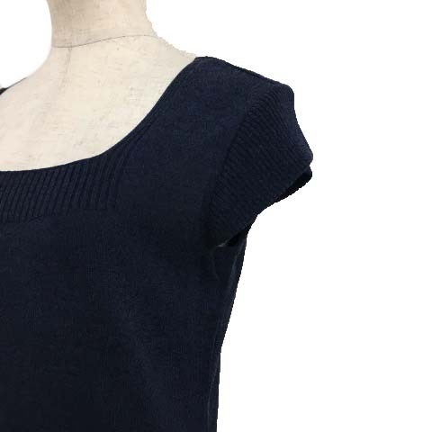 ミス アシダ miss ashida セーター ニット プルオーバー スクエアネック 無地 メランジ フレンチスリーブ M 紺 ネイビー レディース