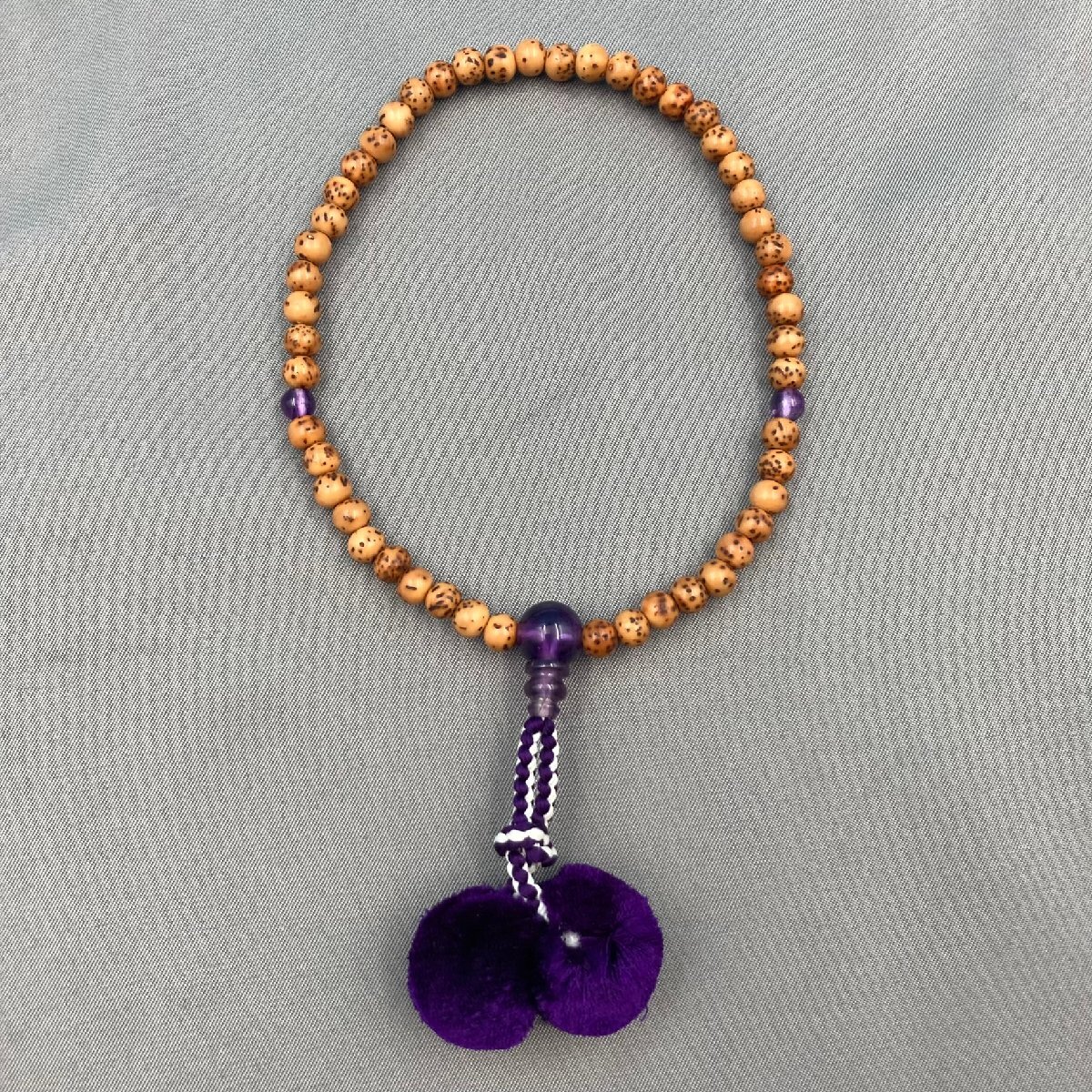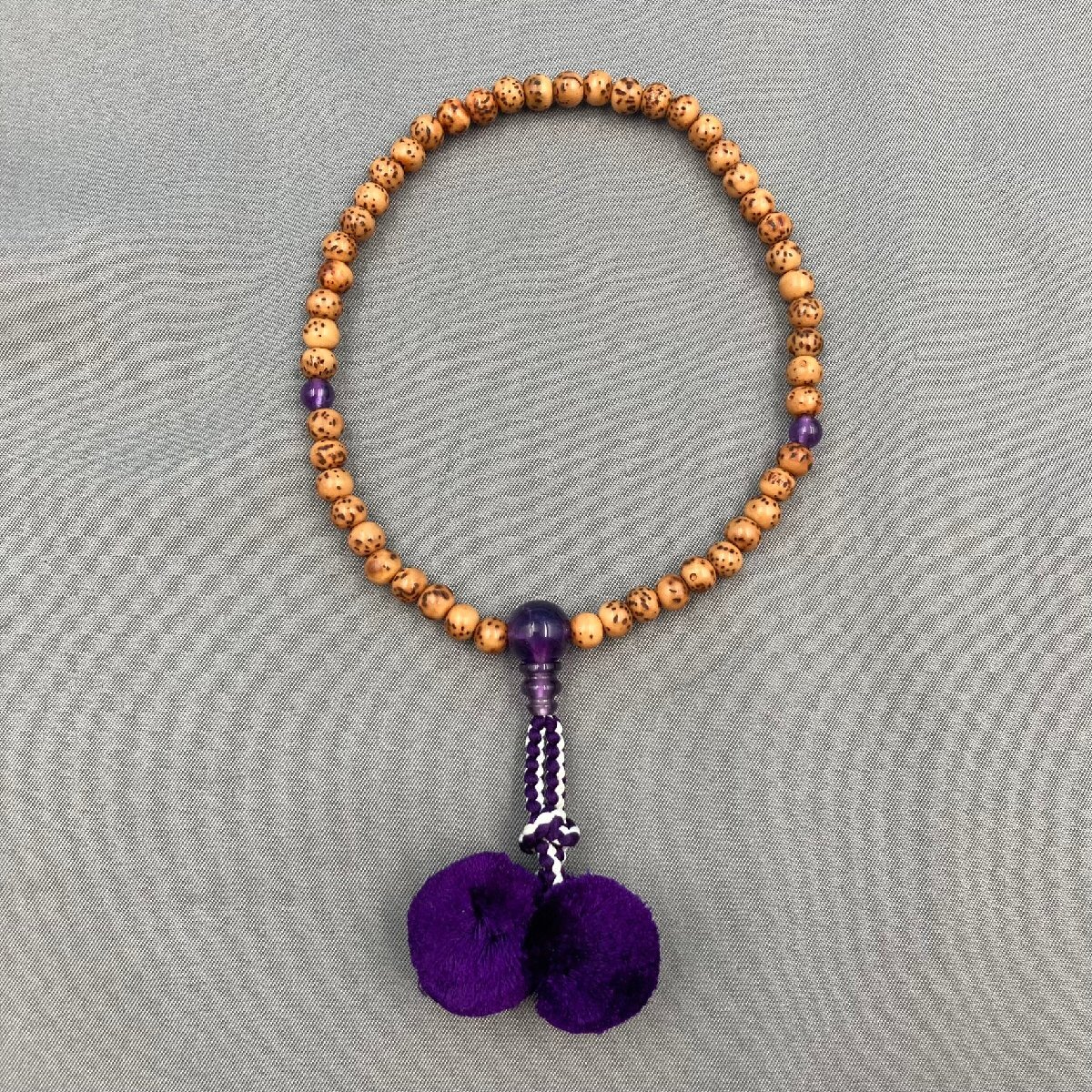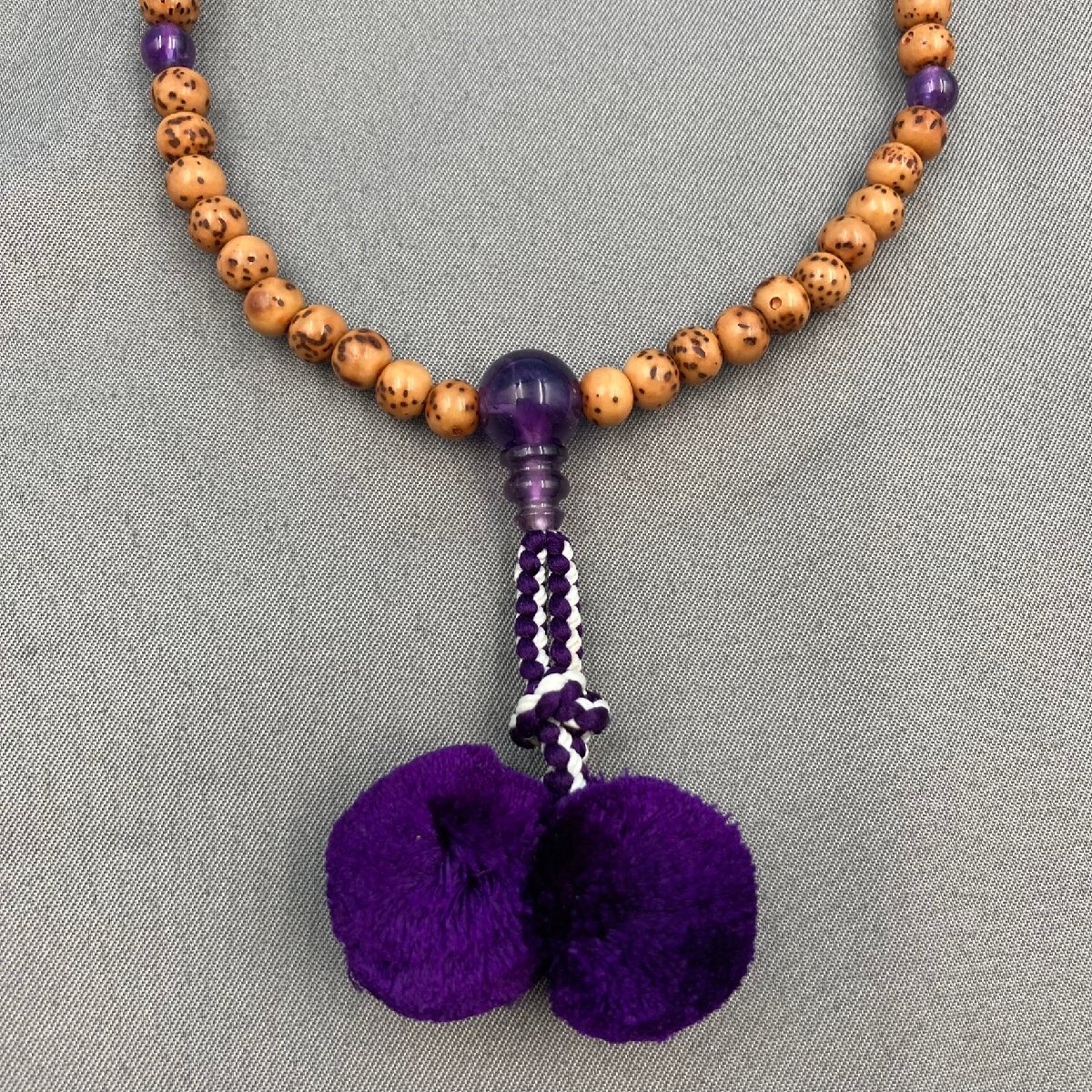 【12413】星月菩提樹? アメジスト? 略式念珠 数珠 念珠 仏珠 片手念珠 女性用 梵天房 仏具 法具 紫 パープル 法事 葬具 寺院 宗教 仏教