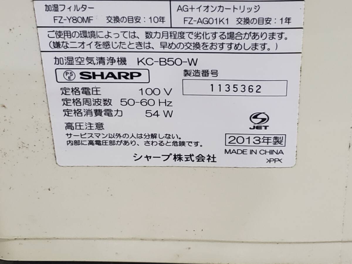 Q6183 通電OK/現状渡し☆売切☆SHARP シャープ KC-B50-W 加湿空気清浄機 2013年製