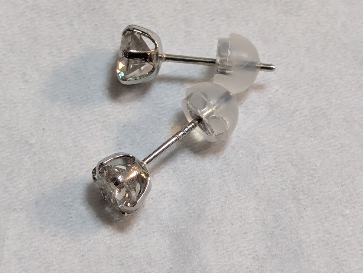 こちらは大粒なダイヤモンドを2粒使用した、ダイヤモンドスタッドピアスです。