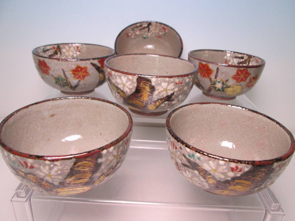☆お料理屋さんの器 花光製 乾山写 紅葉に桜の花文小向付 六客 箱無し 小鉢/懐石/割烹/日本料理