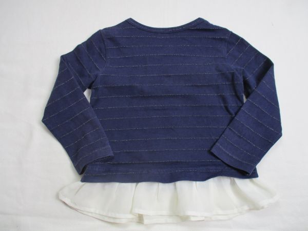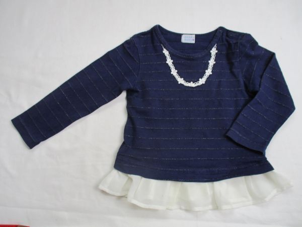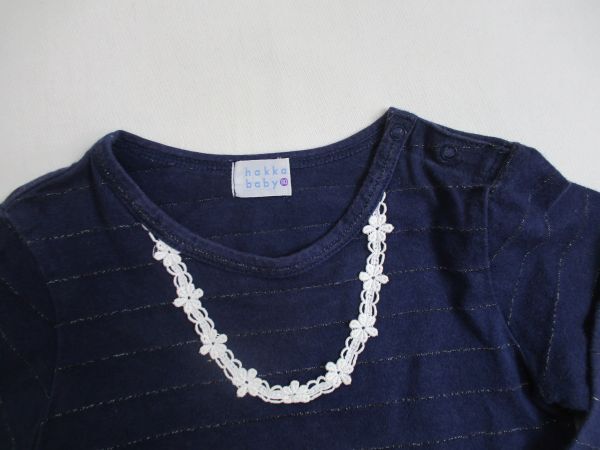 BF860【hakka kids・ハッカキッズ】レース・フリル付き ボーダー 長袖 カットソー 女児 濃青 90 | |