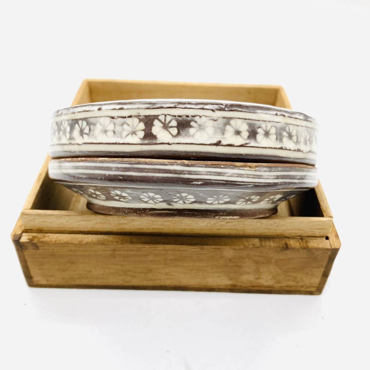 朱肉池 肉地 陶器 木箱付き アンティーク 陶器 レトロ