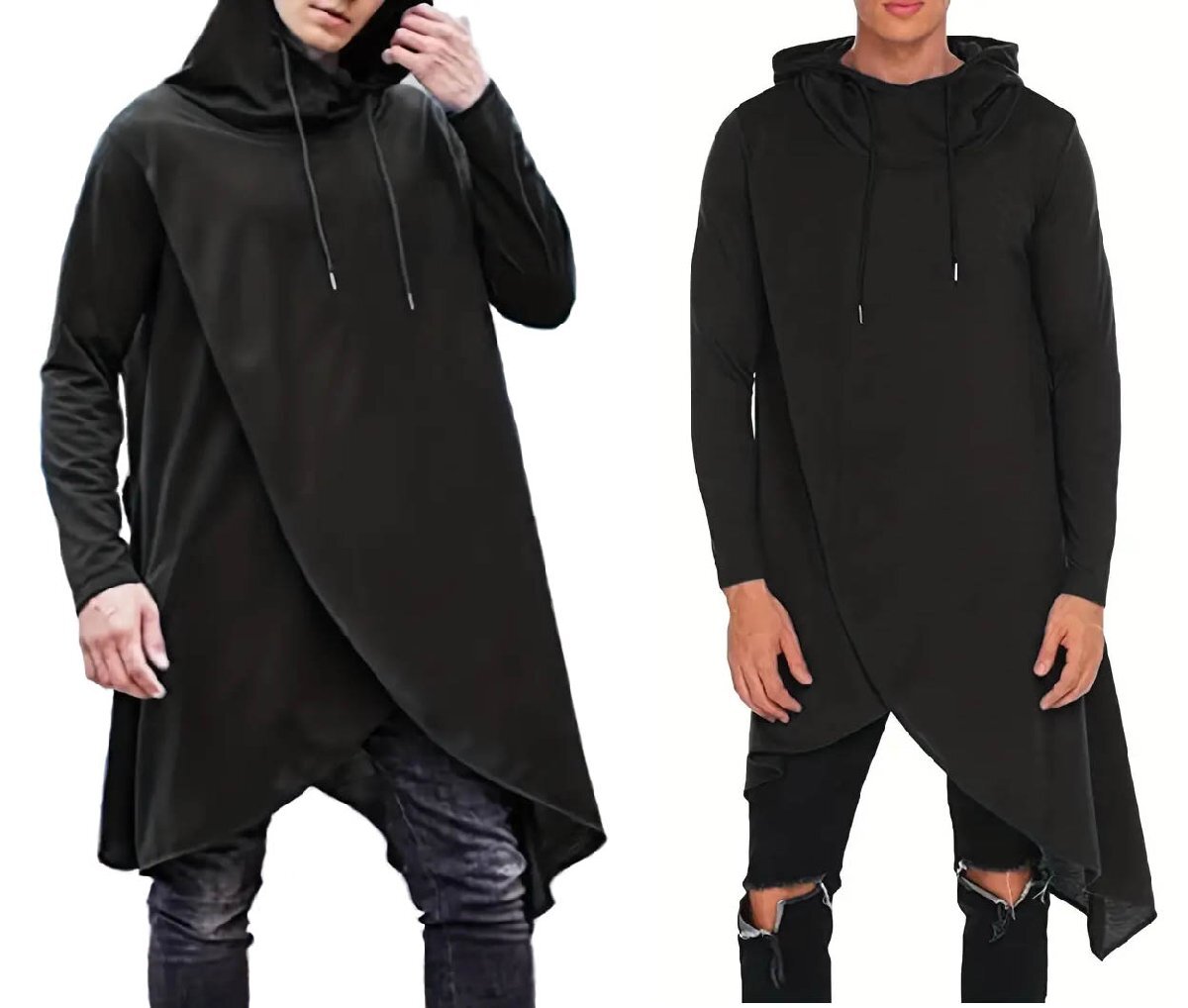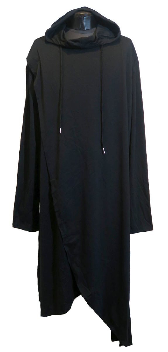 新品 0XLサイズ パーカー ロング丈 アシンメトリー 黒 1218 ブラック メンズ オーバーサイズ カシュクール パンク ロック ヴィジュアル系