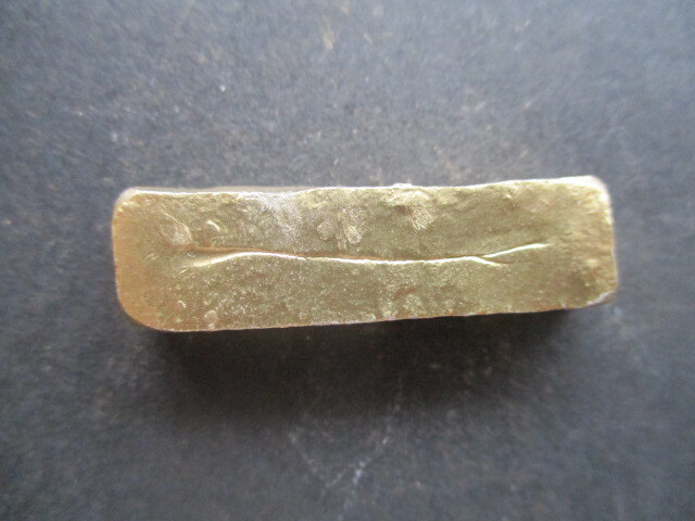今回は委託品です。藩札のように藩内でのみ通用していたと聞いています。小判金と金地金の中間的な位置でしょうか。藩によって少しずつ形状が異なるようです。刻印は鋳造所の屋号かと思われます。傷や汚れなど状態についての詳細情報は画像でご確認ください。撮影の際の光の量によって実物と違った色に写ることがあります。タイトルに記載した量目は写真撮影の際に先方(委託者)宅で測定した値です。計量器の誤差は0.2g以内と聞いています。とりあえず本物と信じて購入したそうですが、入手以来一度も鑑定に出したことがなく、トラブル防止のためあえてレプリカとして出品させていただきます。また、伝承に従ってタイトルに「金塊・金地金」と記載いたしましたが、金品位を記載した保証書が見当たらないとのことですので、非金製品として出品させていただきます。開始価格は買い値の十分の一以下とさせていただきますので「レプリカ・非金製品」を前提に無理のない範囲でご入札ください。寛永通寳は商品に含まれません。高騰防止のため即決価格をご用意しました。自己紹介欄にオークション休業日を記載させていただいております。お手数とは存じますが、ご入札前にお読みいただければ幸いです。よろしくお願い申し上げます。