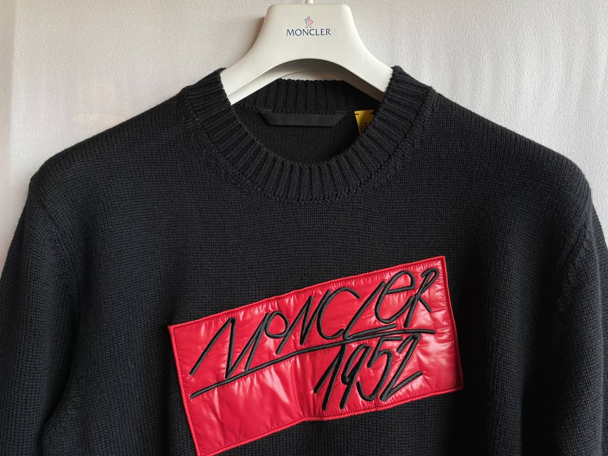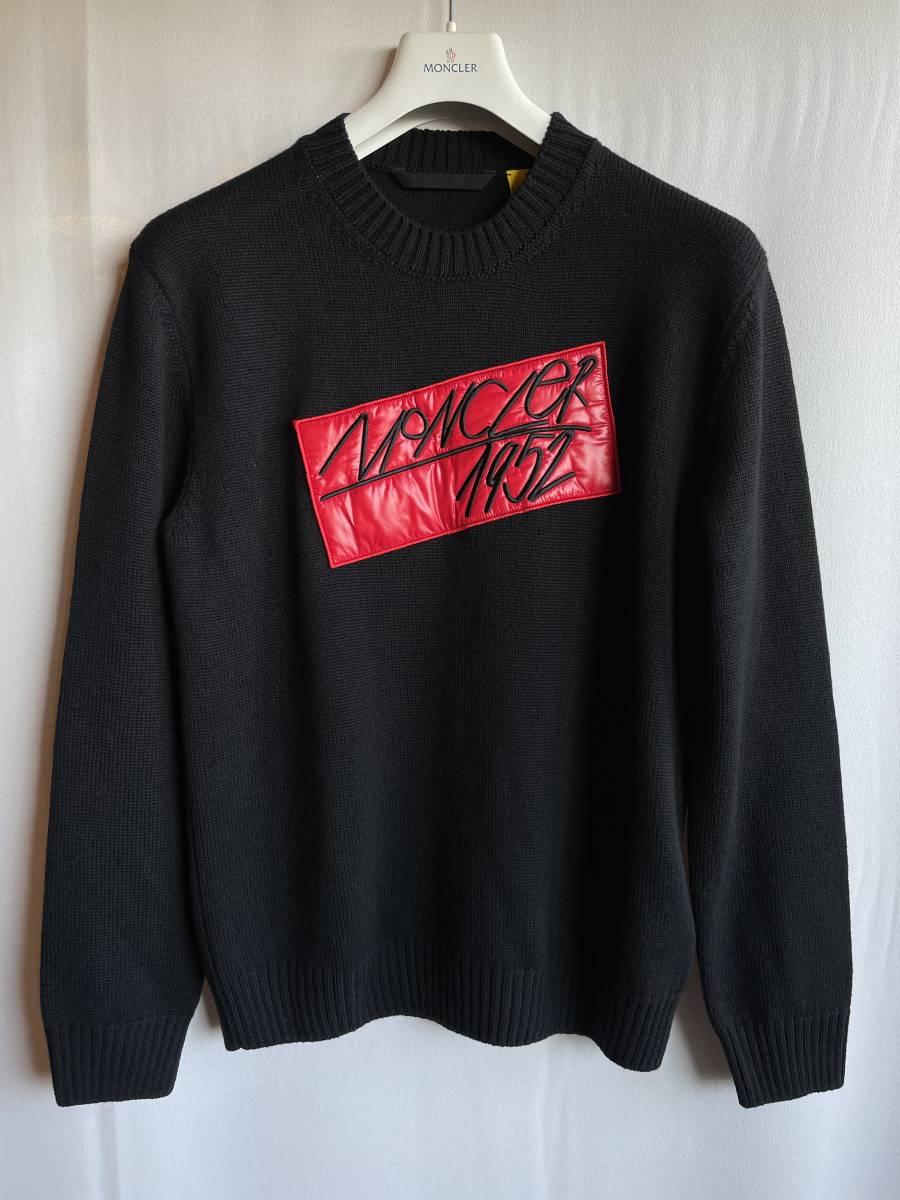 新品 本物 モンクレール ジーニアス1952 ビッグ ロゴ ニット M MONCLER 黒 ブラック レッド 赤 セーター GENIUS ヴァージン ウール