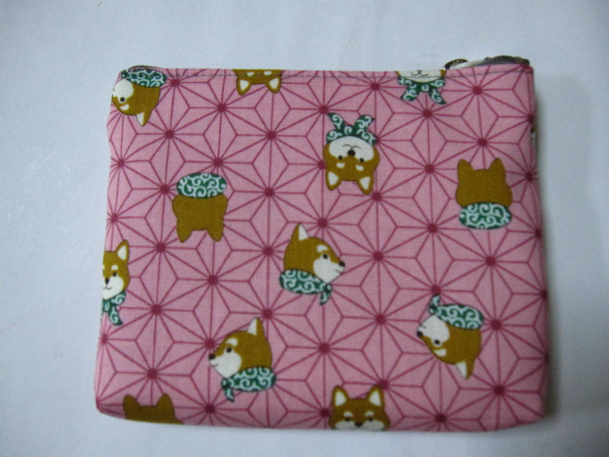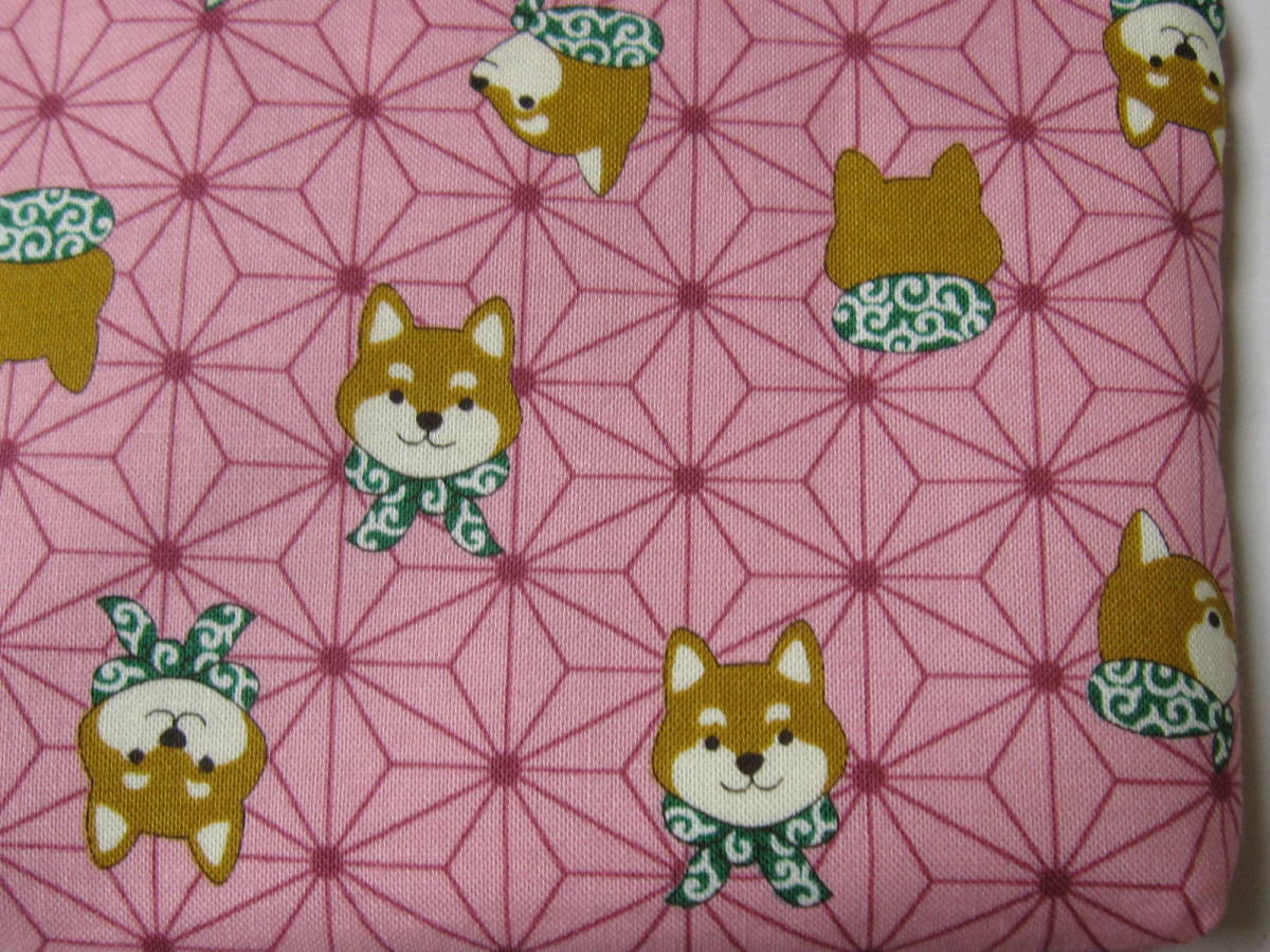 手作り 小物 ポーチ ピンク 柴犬 麻の葉 模様 和柄 唐草 小紋 ハンドメイド 動物 犬 財布 充電器 男女 兼用 冬 動物 可愛い お洒落 綿 祝い