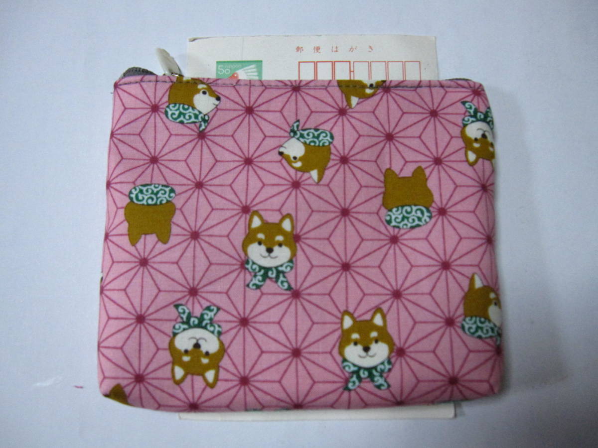 ★ ハンドメイド  お財布・ポーチ  人気の和柄と柴犬のコラボ!  (ピンク)  ※1点のみ。