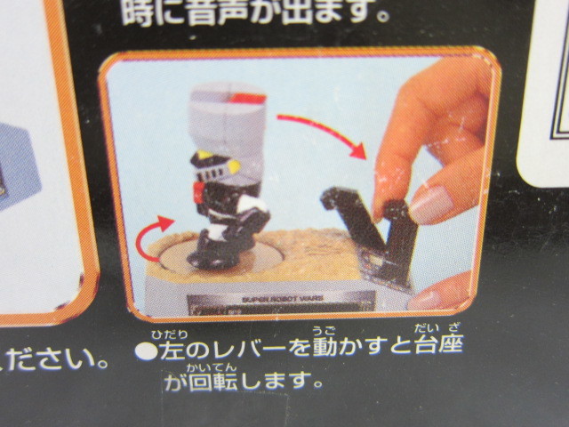左のレバーを動かすと台座が回転します」 単3電池2本使用(別売り)