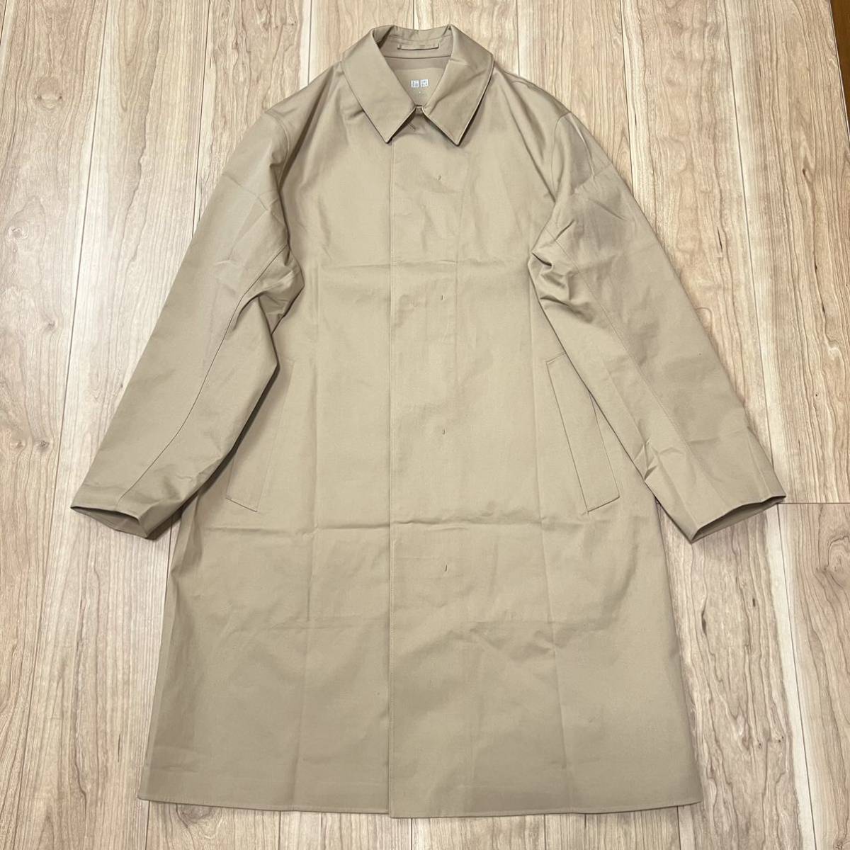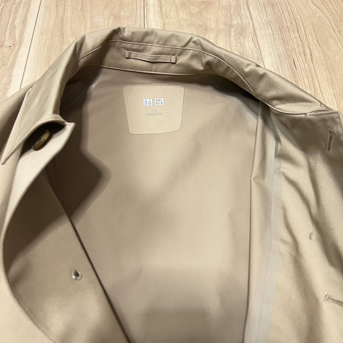 【人気】美品 UNIQLO ユニクロ ブロックテック ステンカラーコート 耐久撥水 防風 透湿性 メンズ ベージュ系 サイズM R-5567