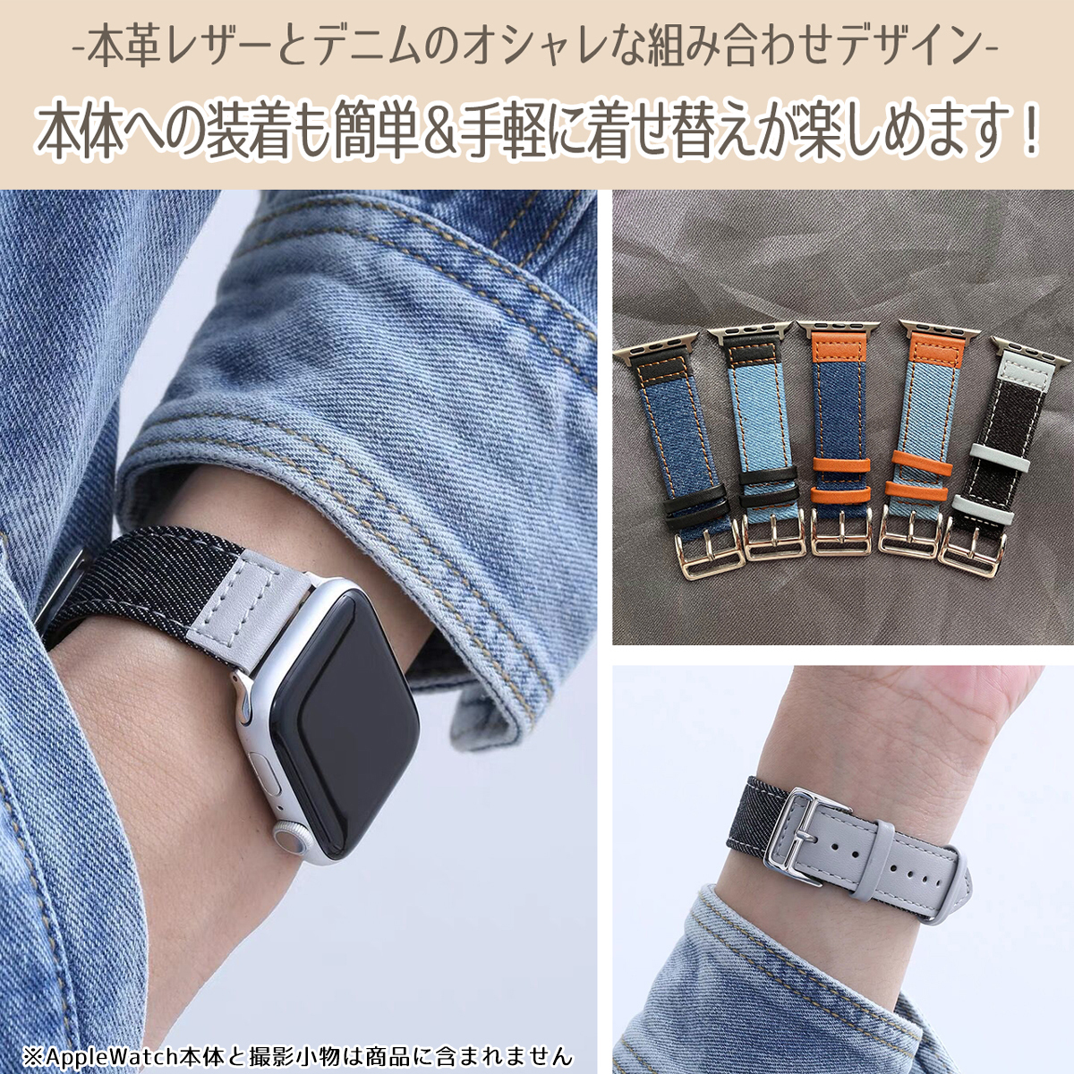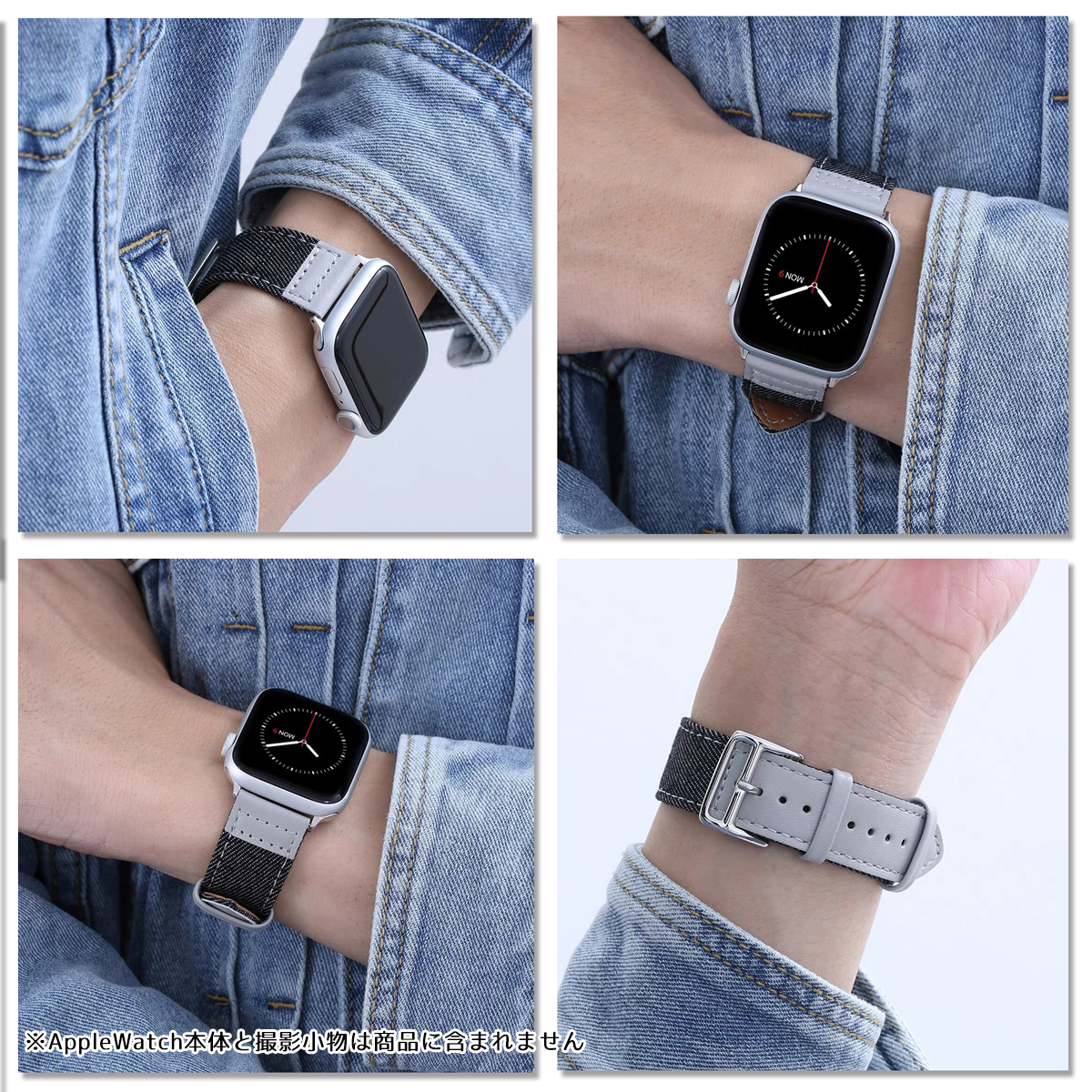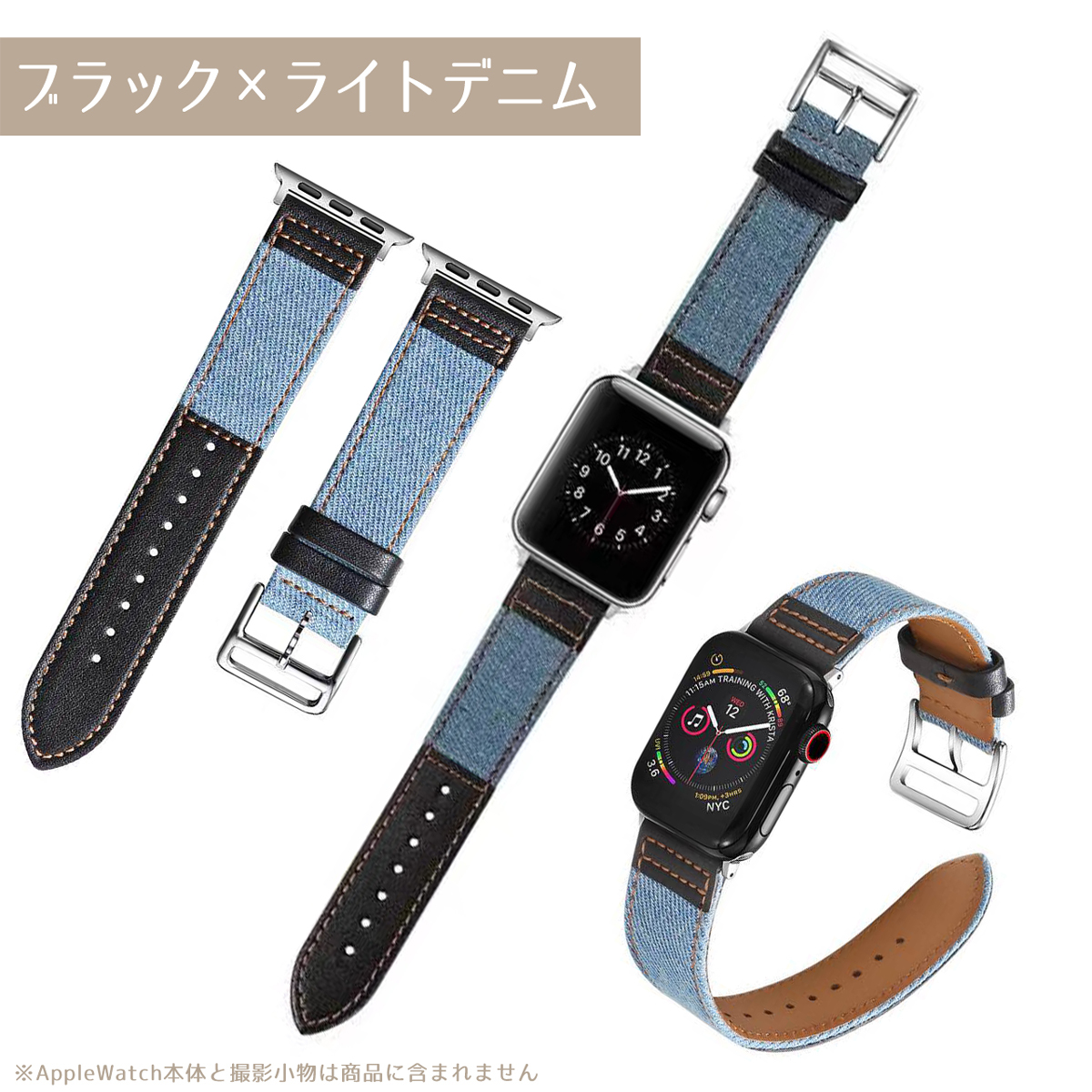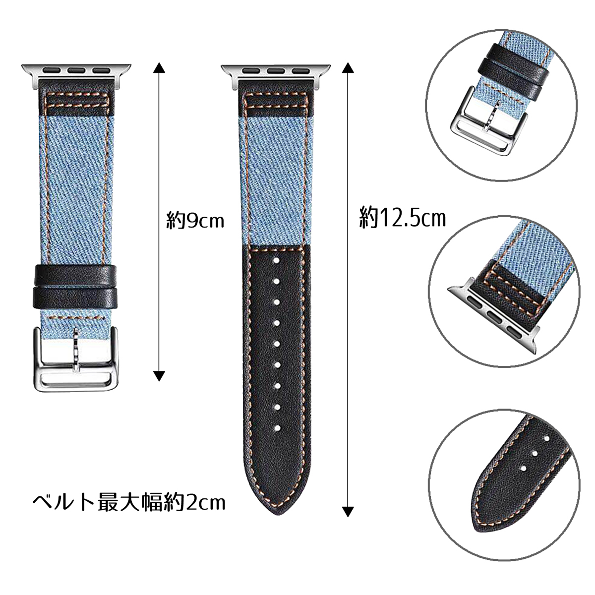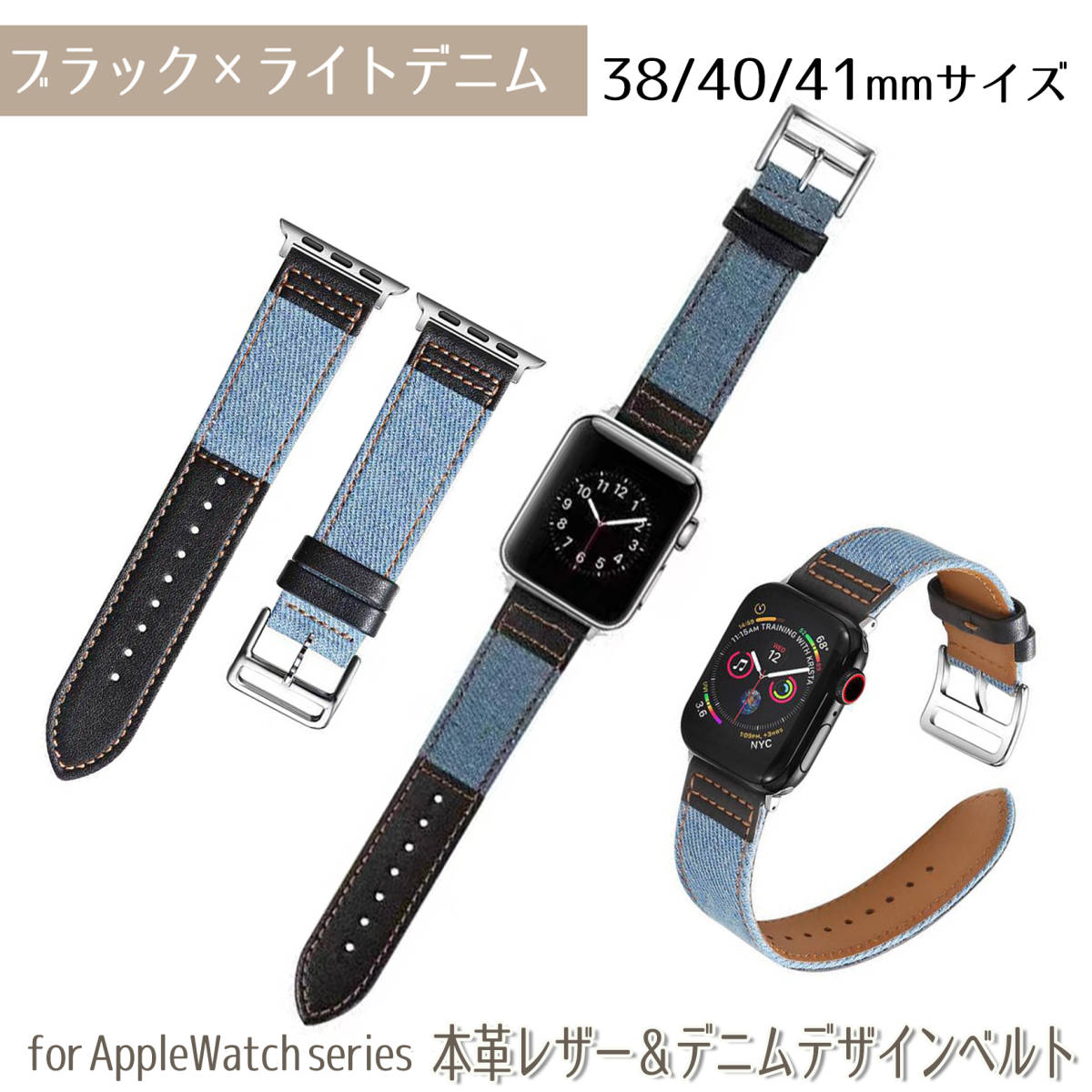 【AFP】アップルウォッチ バンド ベルト レザー 革 デニム バイカラー 38/40/41mm ブラックライトデニム 交換ベルト apple watch