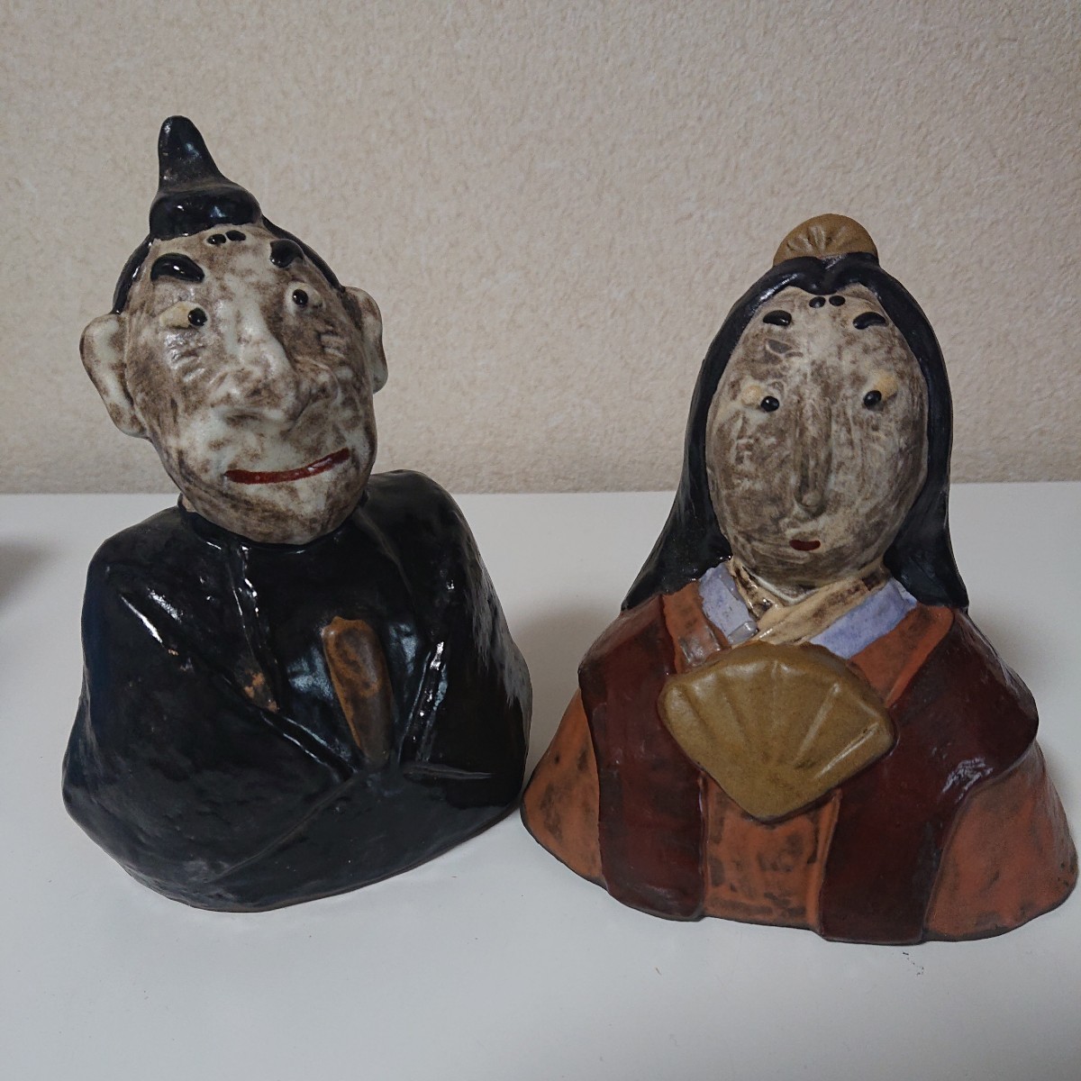 民芸品 置物 人形 郷土人形 土人形 夫婦 伝統工芸 計2体 まとめ  【4-20914】
