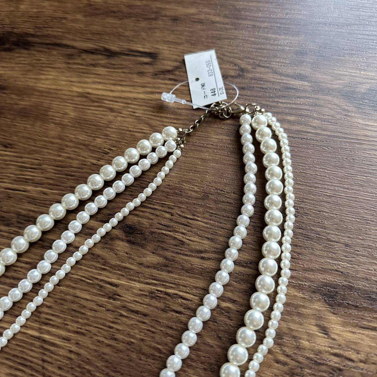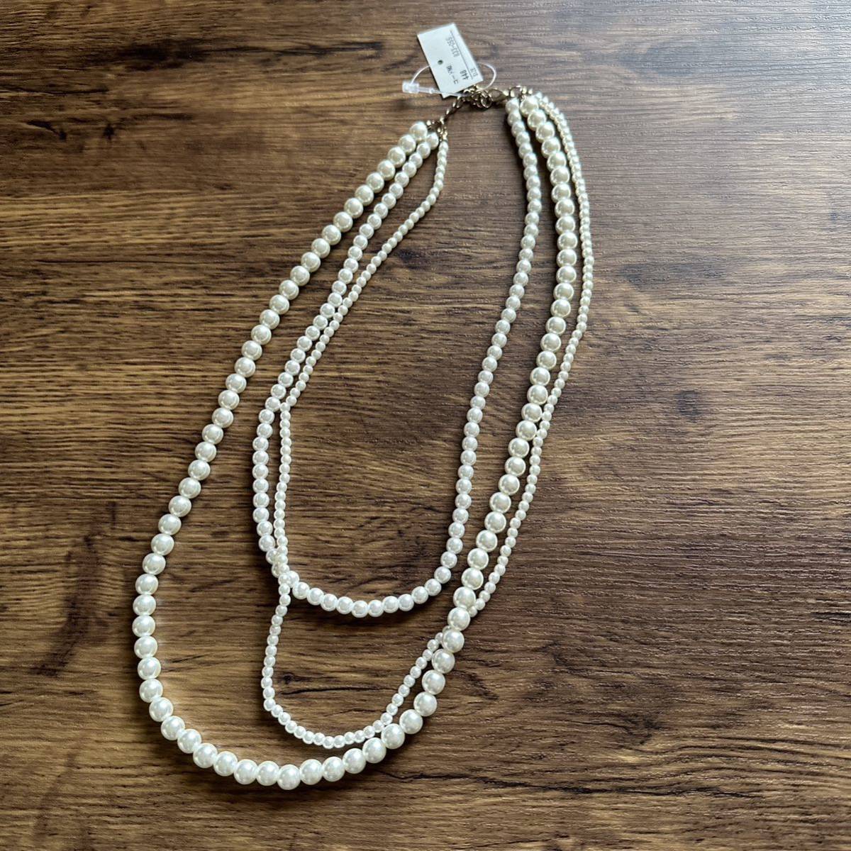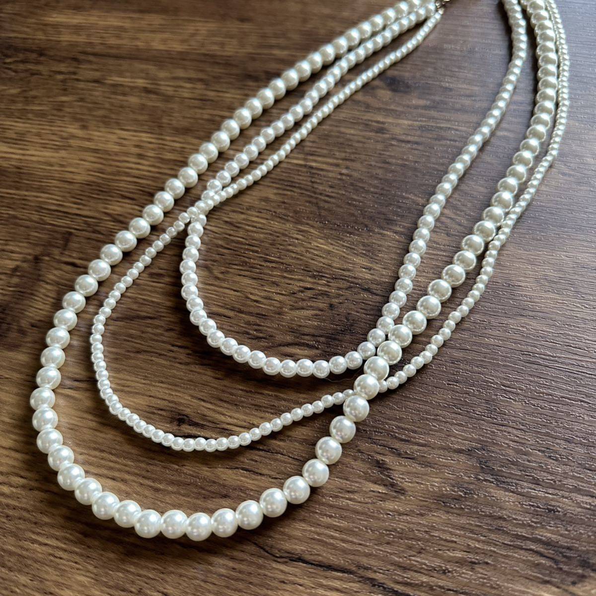 フェイクパール大中小のサイズ感の三連パールでとても上品で洗練されたデザインです