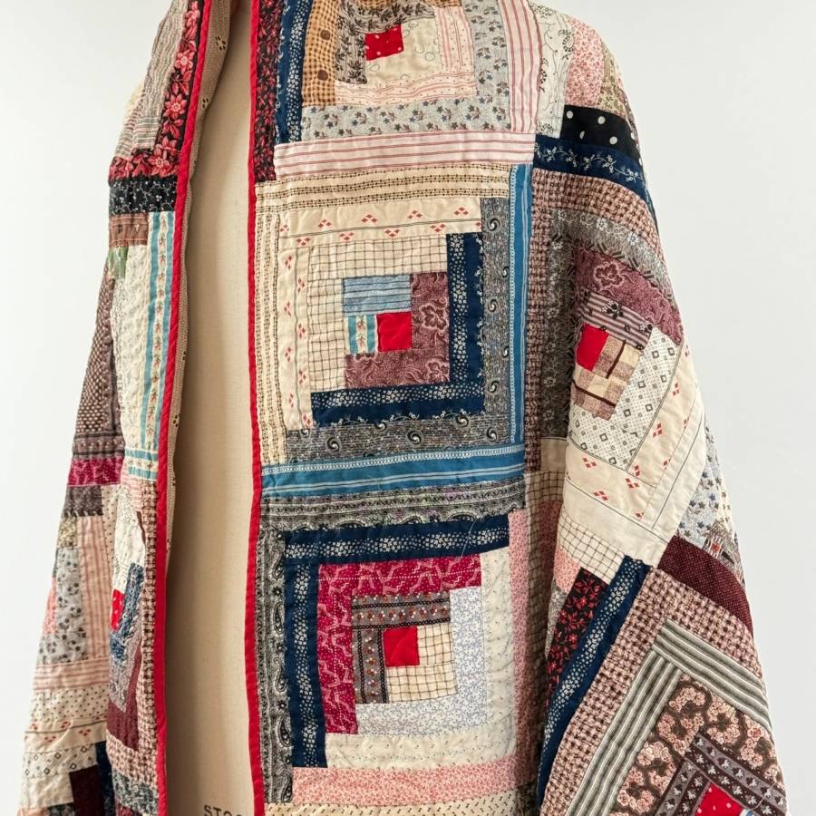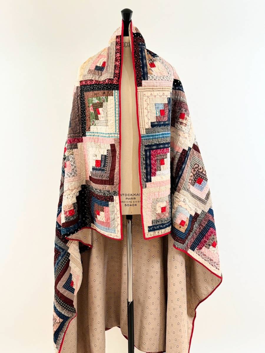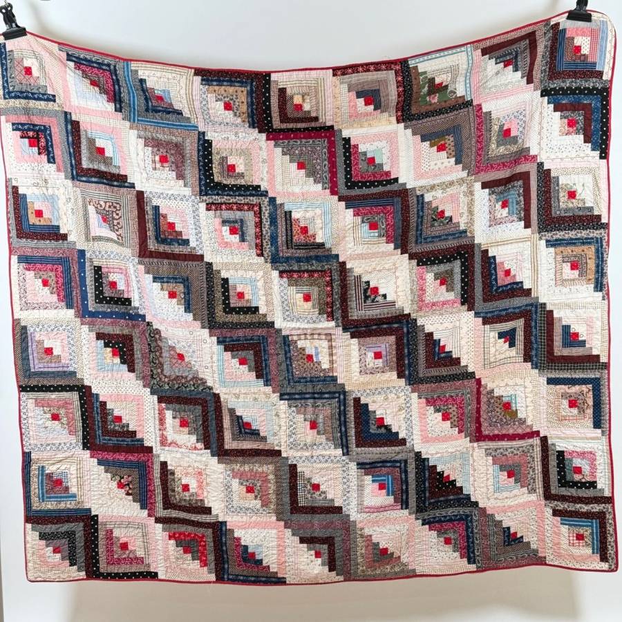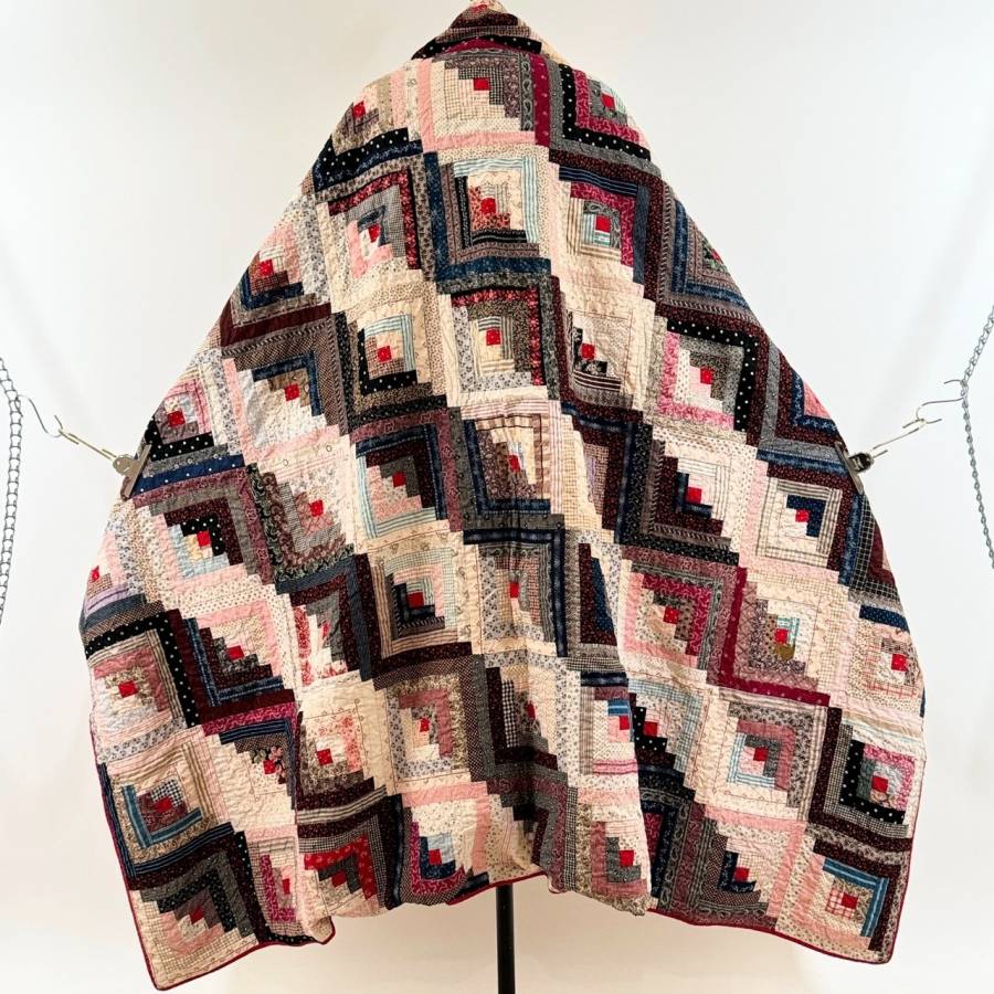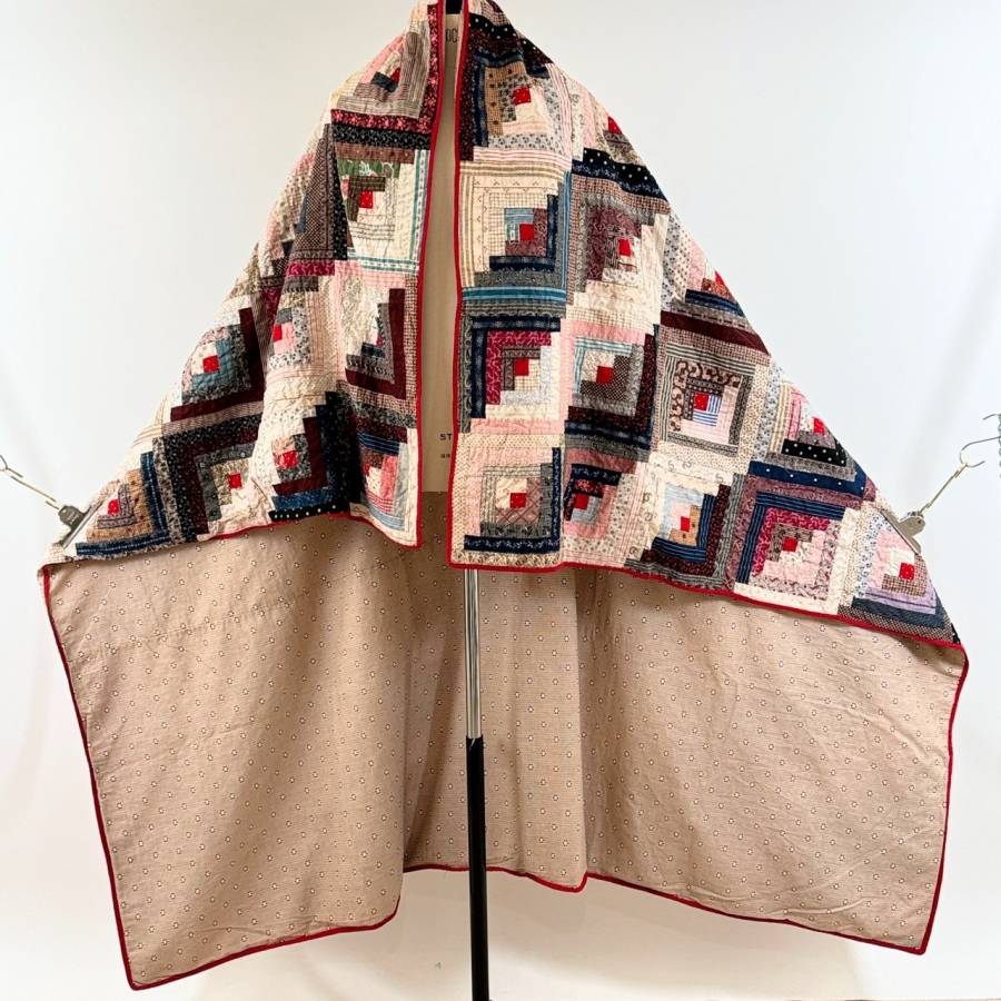 全面に散りばめられたアンティークログキャビンキルト。