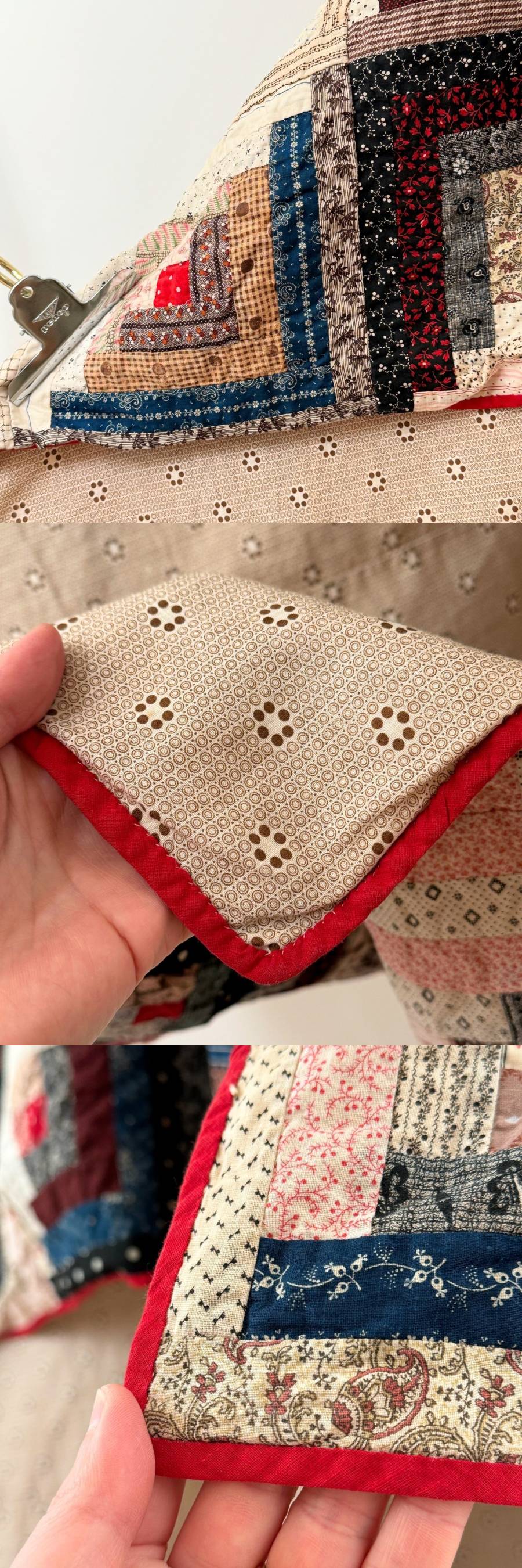 希少《 Rare / Mint Condition 》1900s 極上品【 アンティーク ログキャビン パッチワーク キルト キャリコ ビンテージ 】