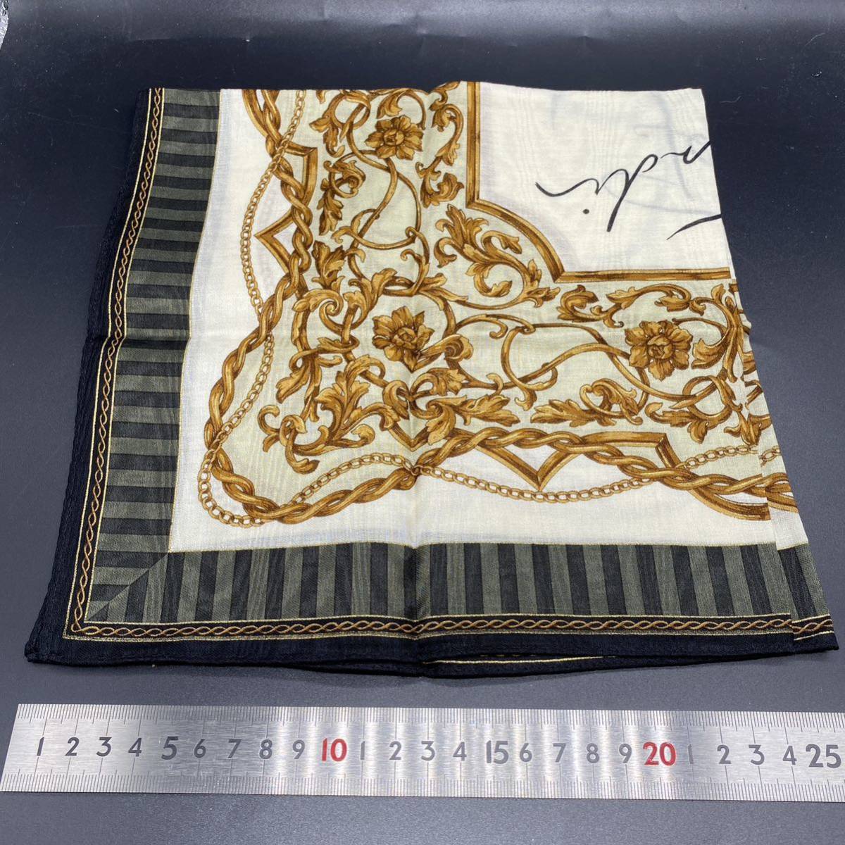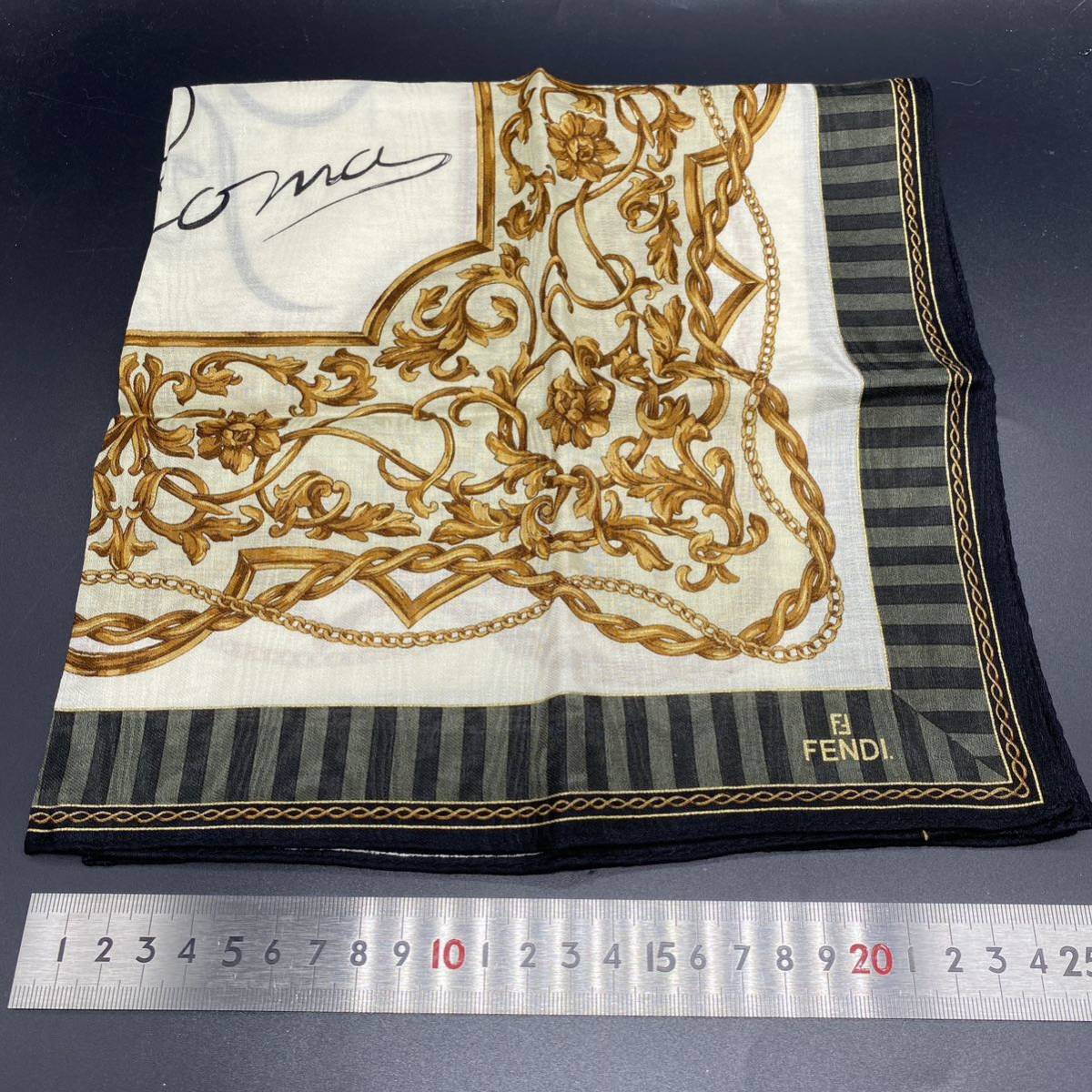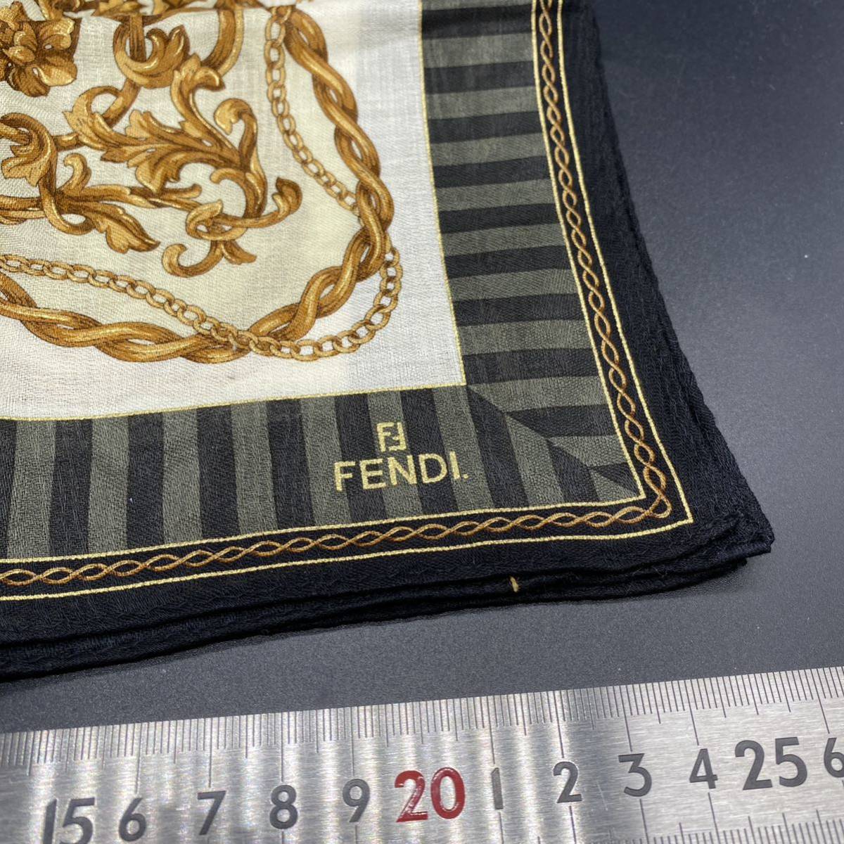 FENDI フェンディ ハンカチ ボタニカル グリーン系 ふちブラック  no.35