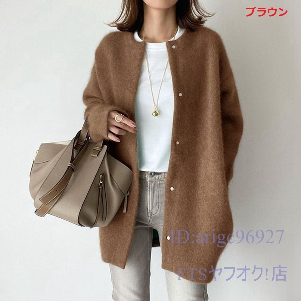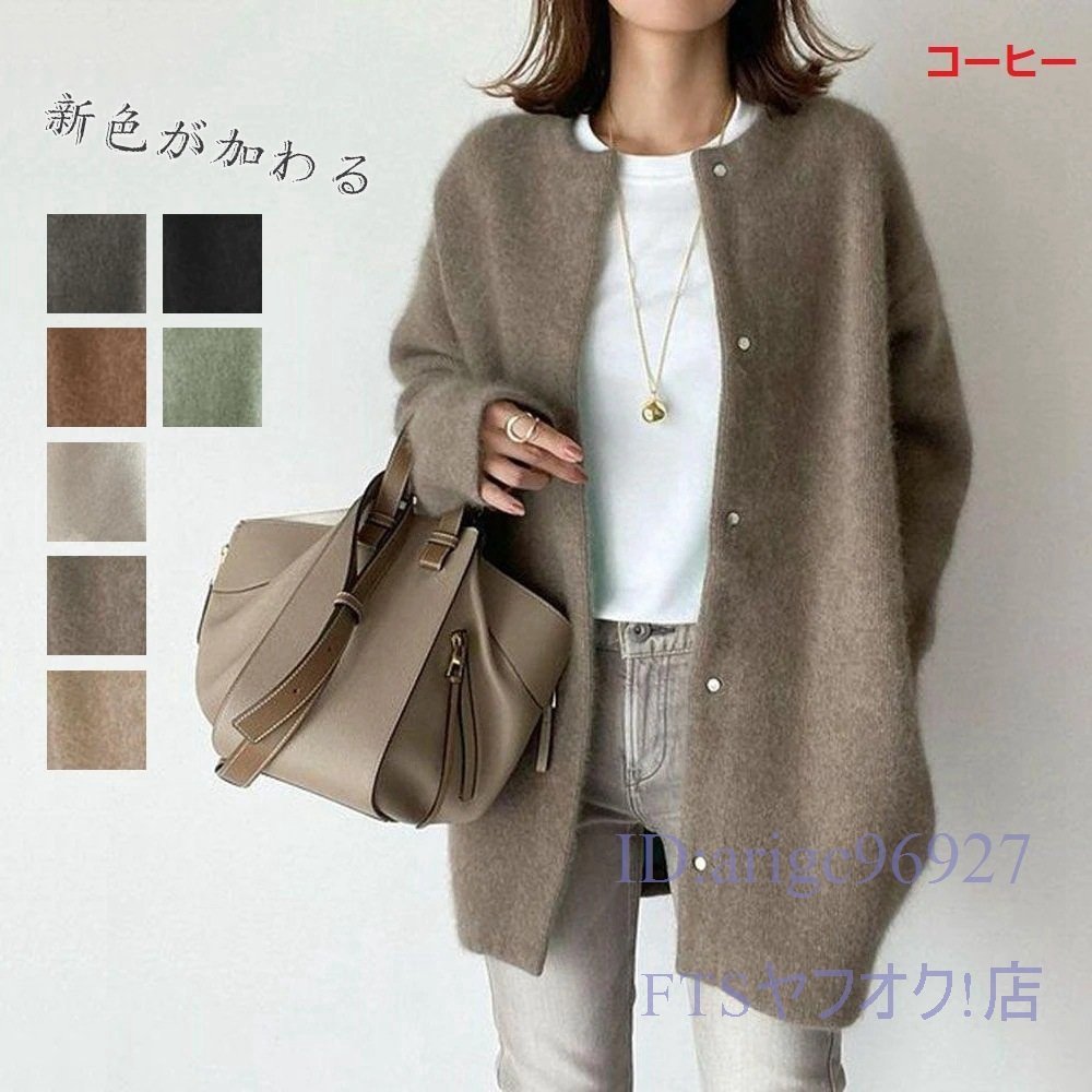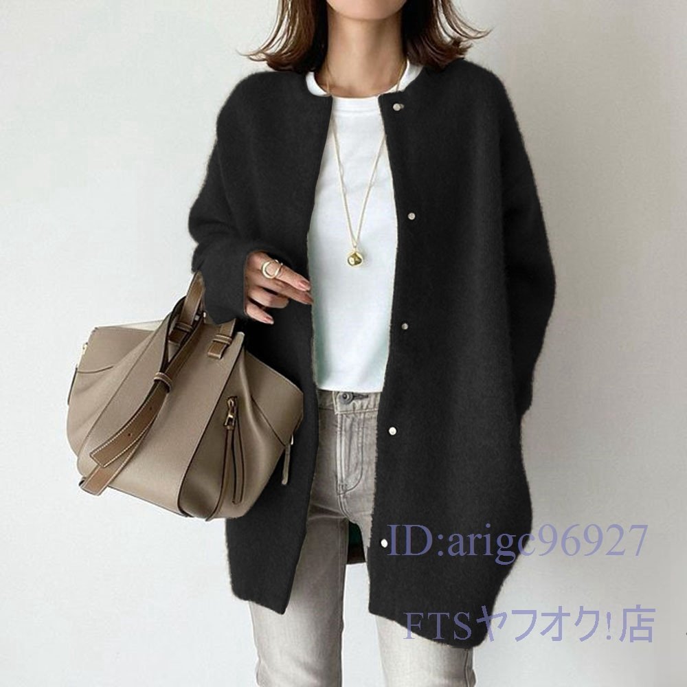 V010☆新品少しもこもこっとがかわいい フリーサイズだけど大きいサイズもOK ロング丈ニットカーディガン アイボリー ブラック