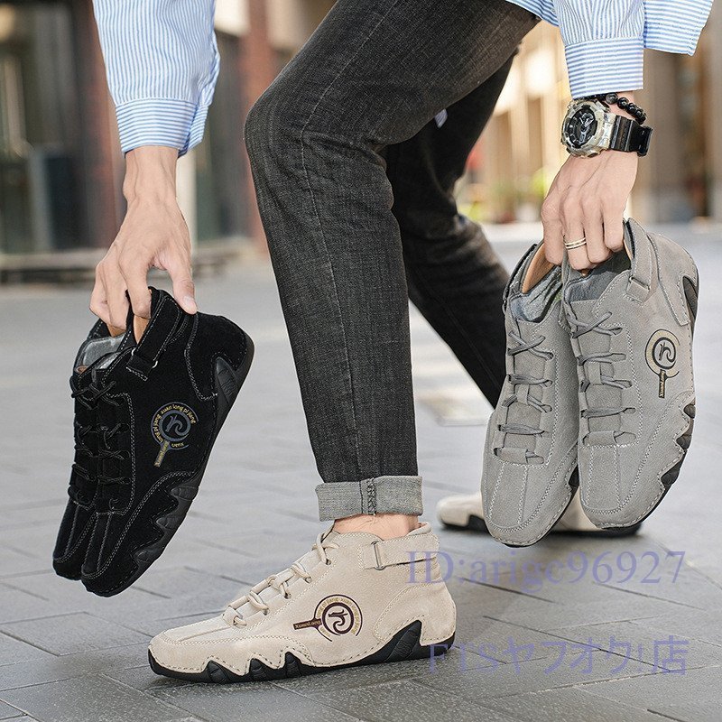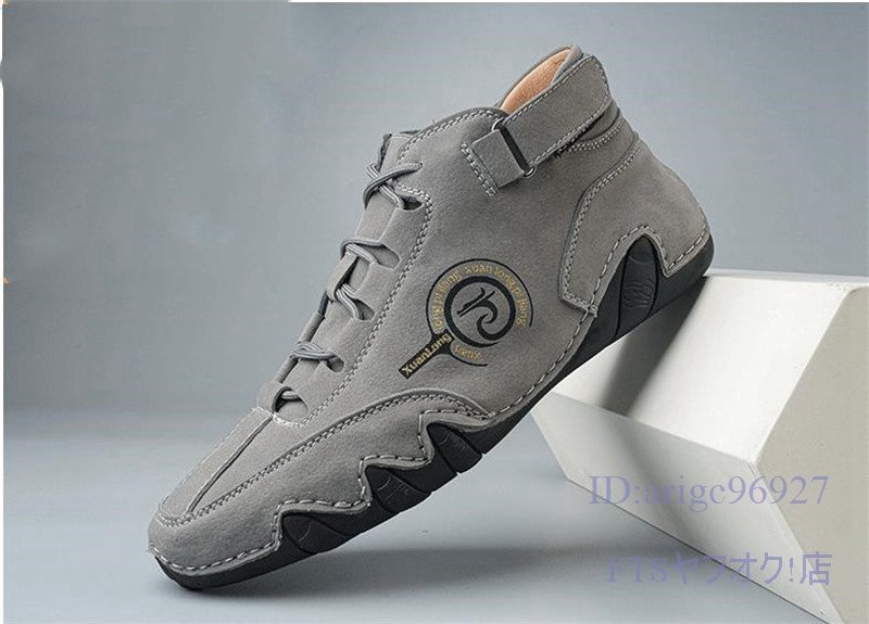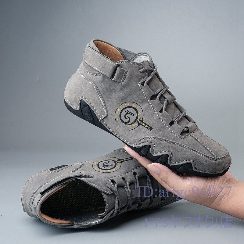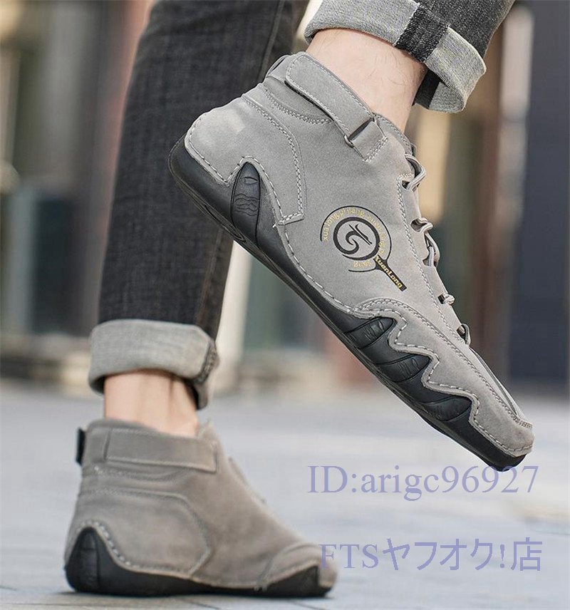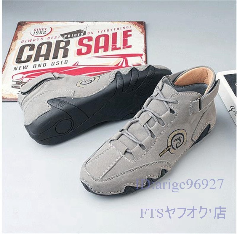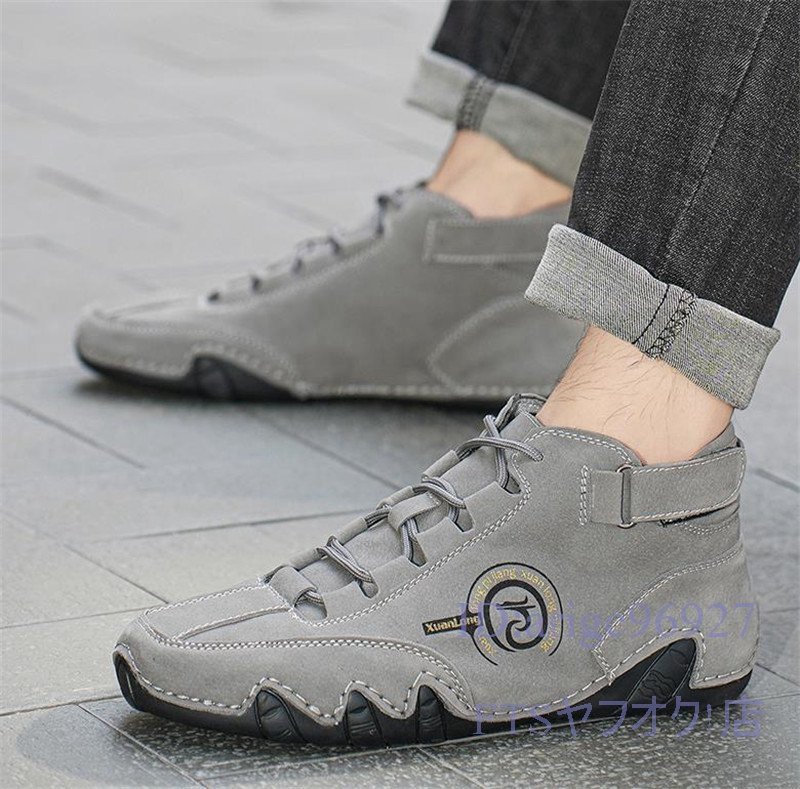 U384☆新品スニーカー *メンズ スリッポン ドライビングシューズ 春秋靴 アウトドアシューズ カジュアル グレー 25.0cm