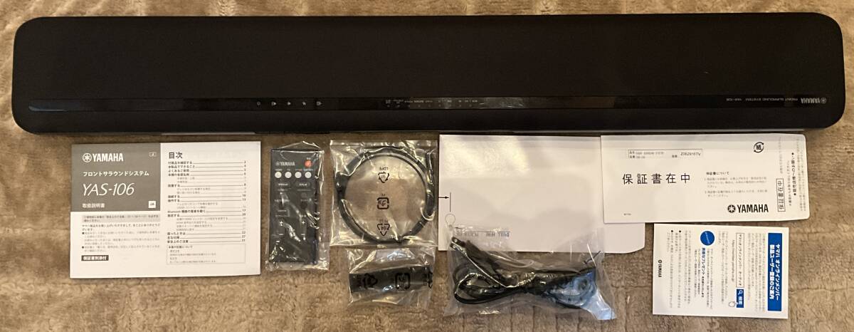 | ◆商品説明◆ | ご覧頂き有り難うございます。 YAMAHA YAS-106 フロントサラウンドシステム サウンドバー 2016年製 となります。 ●送付商品状態 ・目立った傷や汚れなし (写真参照) ・動作確認済み(テレビとHDMIケーブルで接続し音声出力確認) ・リモコン(未使用、動作未確認) 注 リチウムコイン電池(CR2025)については未確認ですのでので御了承願います。 ・光デジタルケーブル(未使用、動作未確認) ・Bluetooth接続動作確認済み ●付属品 写真のとおりですが、一通り揃っていると思います。 ●保証書 日付未記入保証書有 ●商品詳細 製品情報 https://jp.yamaha.com/products/audio_visual/sound_bar/yas-106_black__j/index.html 特徴 https://jp.yamaha.com/products/audio_visual/sound_bar/yas-106_black__j/features.html#product-tabs 仕様 https://jp.yamaha.com/products/audio_visual/sound_bar/yas-106_black__j/specs.html#product-tabs 取扱説明書 https://page.auctions.yahoo.co.jp/jp/auction/r1115486005 詳細はこちらの方でご確認をお願いします。 ●その他 取付方法や適合等については出品者で関知致しませんのでご了承下さい。 |
