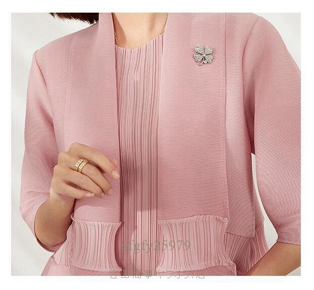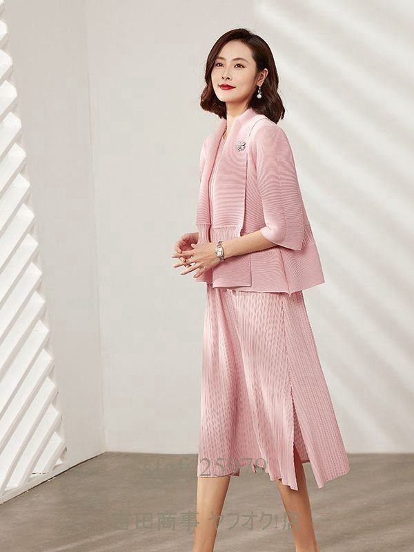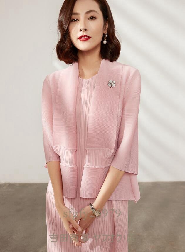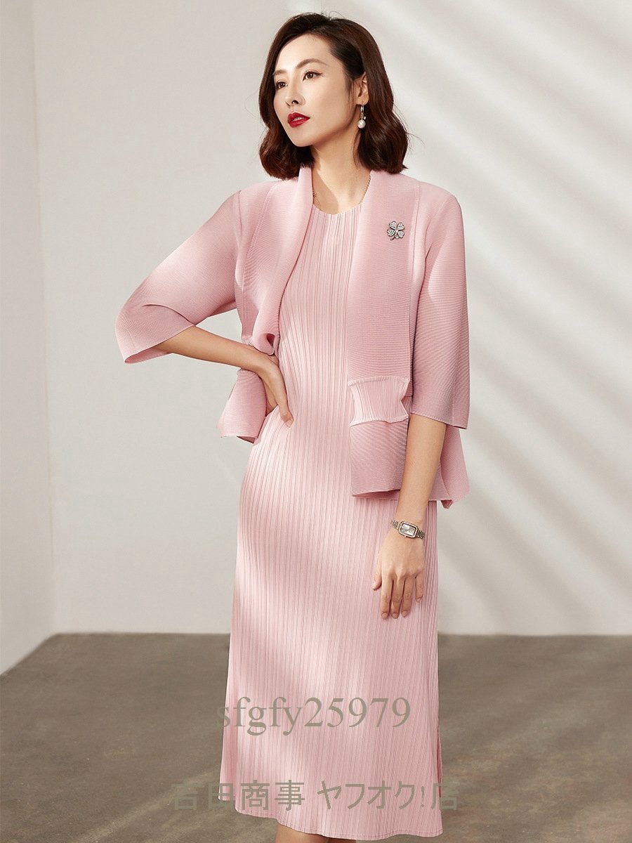 B0356☆新品上質 レディース プリーツワンピース上着2点セット カーディガン前開き 弾力があり ドレープ性いい