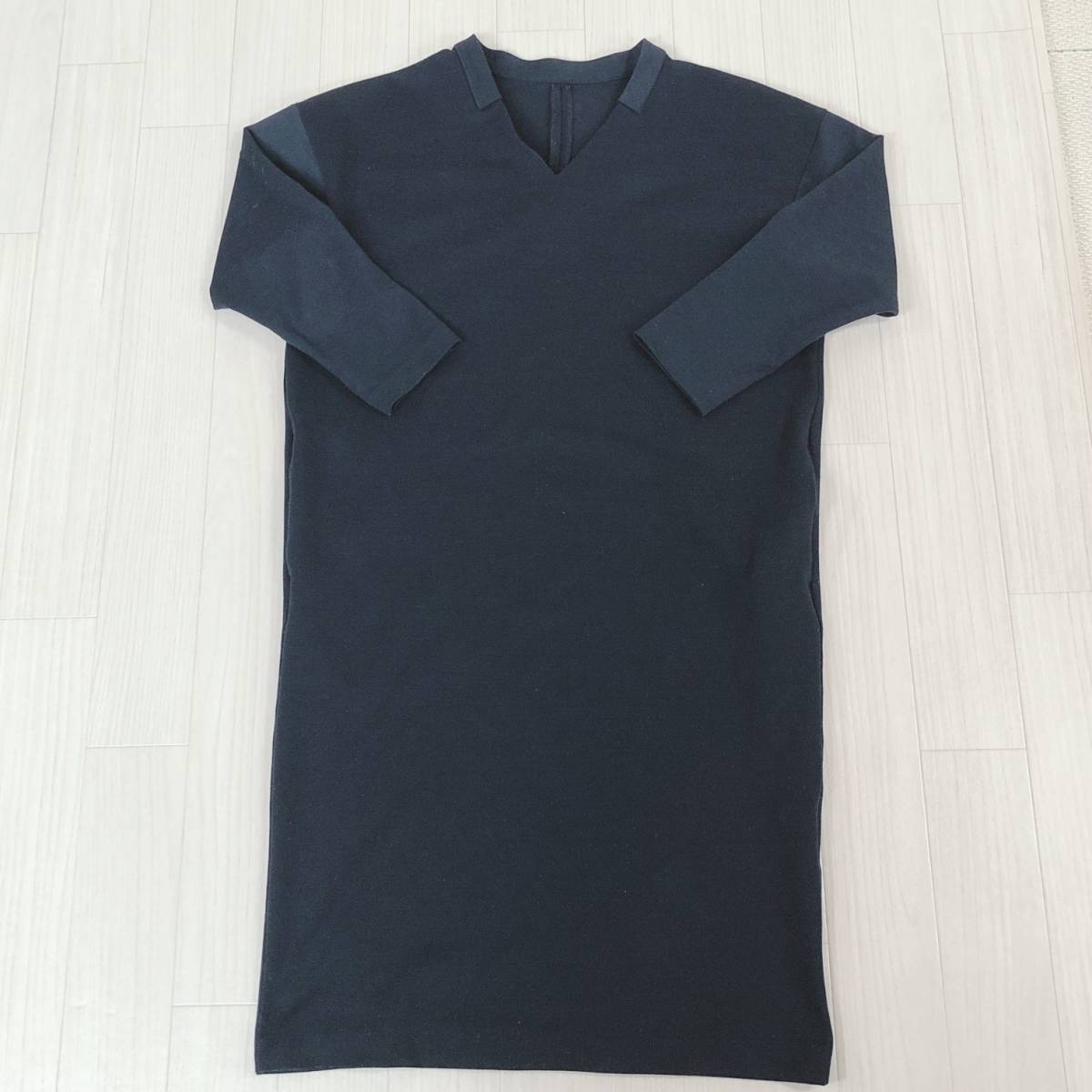 Y0775 ROPE' ロぺ レディース ワンピース 七分袖 膝丈スカート サイズ38 Mサイズ ネイビー 紺 無地 かわいい シンプルデイリーカジュアル