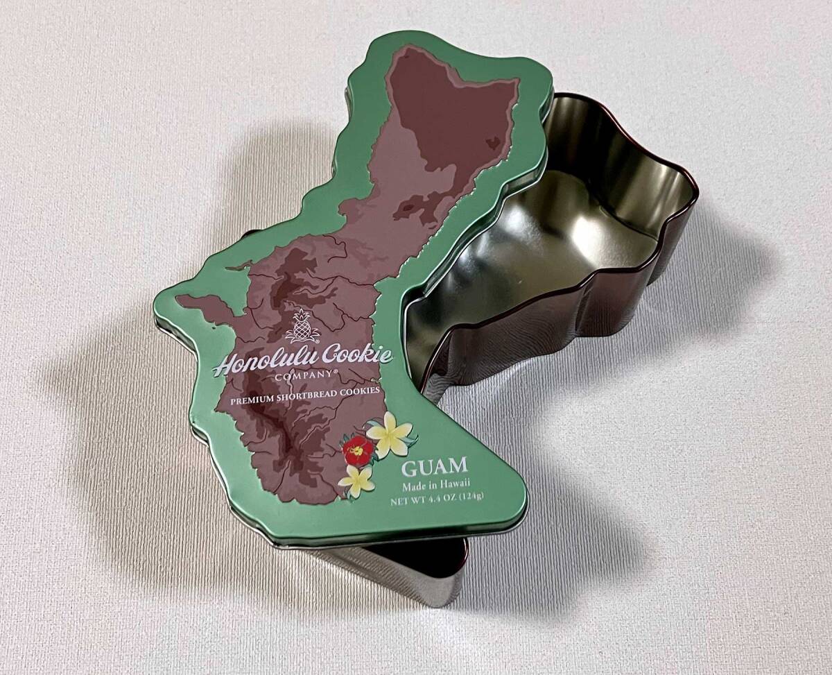 [送料込/即決/匿名配送] ホノルルクッキー グァム島の形の缶 空き缶 インテリアやコレクションに!
