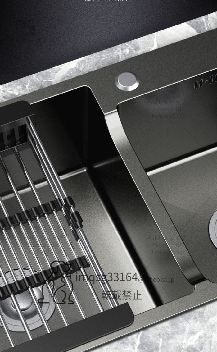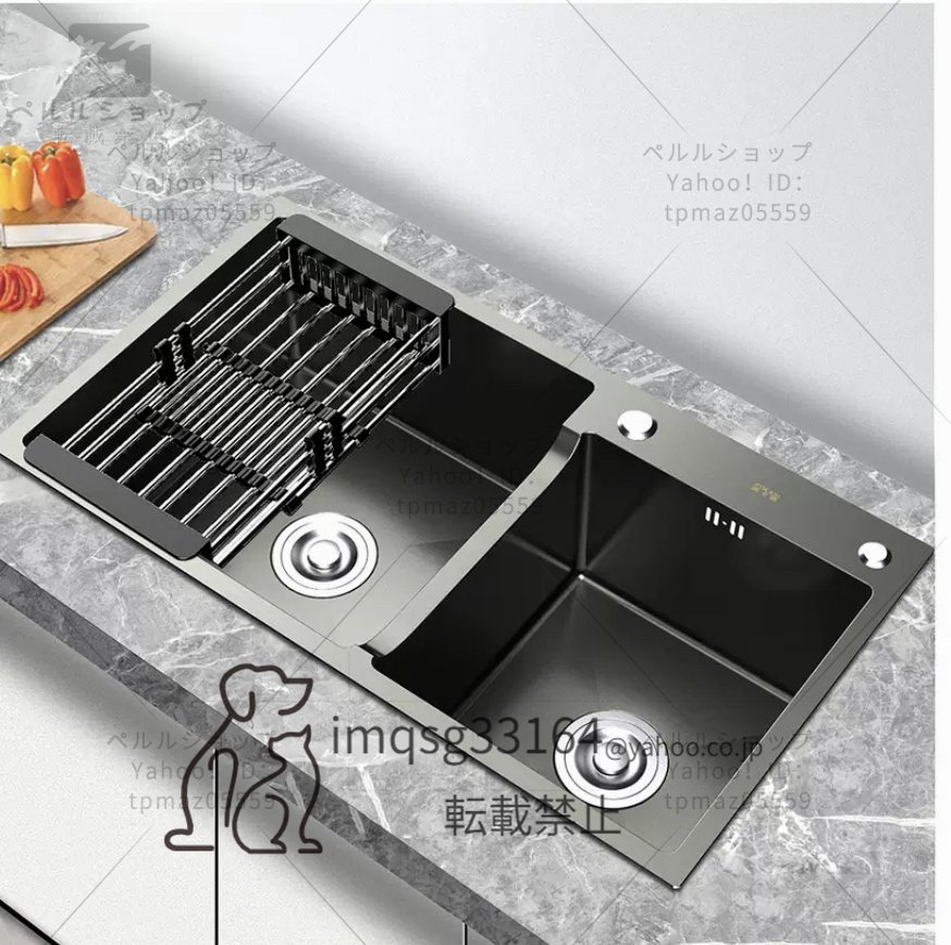 キッチン用品 ステンレス製流し台 台所 2槽シンク 食器洗いシンク 野菜シンク 肥厚大容量 便利 75*41*22CM