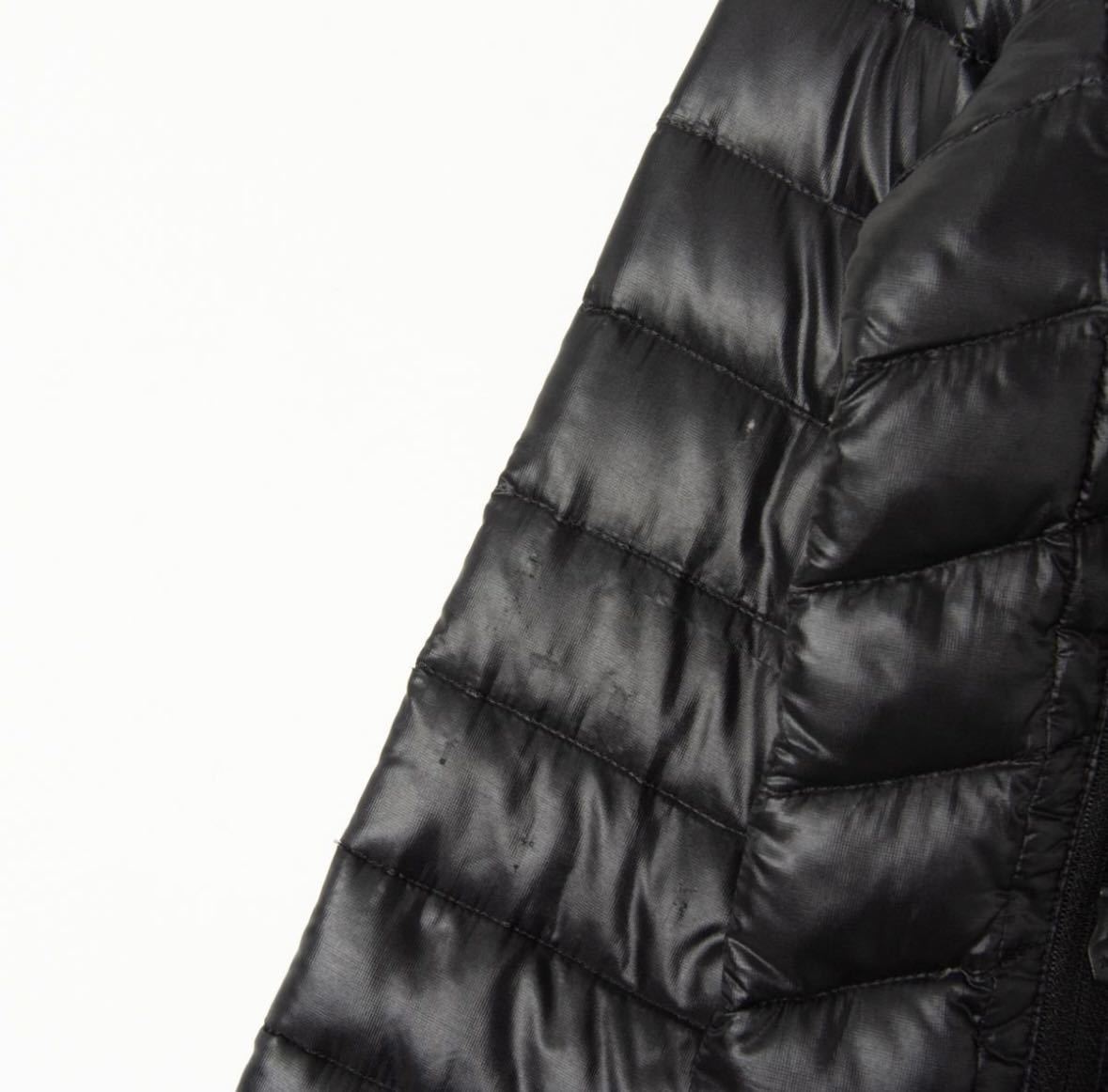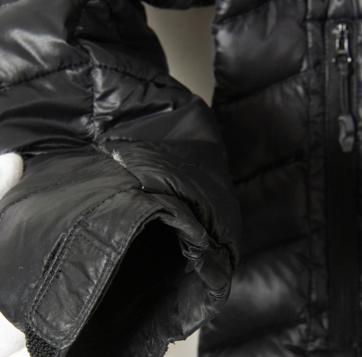右袖に穴、袖口に汚れ、プリントの擦れ、左前身頃にキズ、内側左脇に破れ、見返しタグにほつれがございます。着用は問題なく可能です。