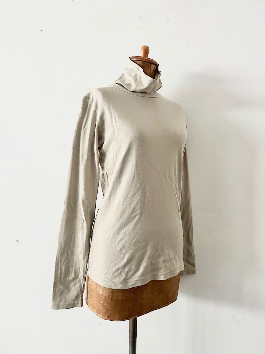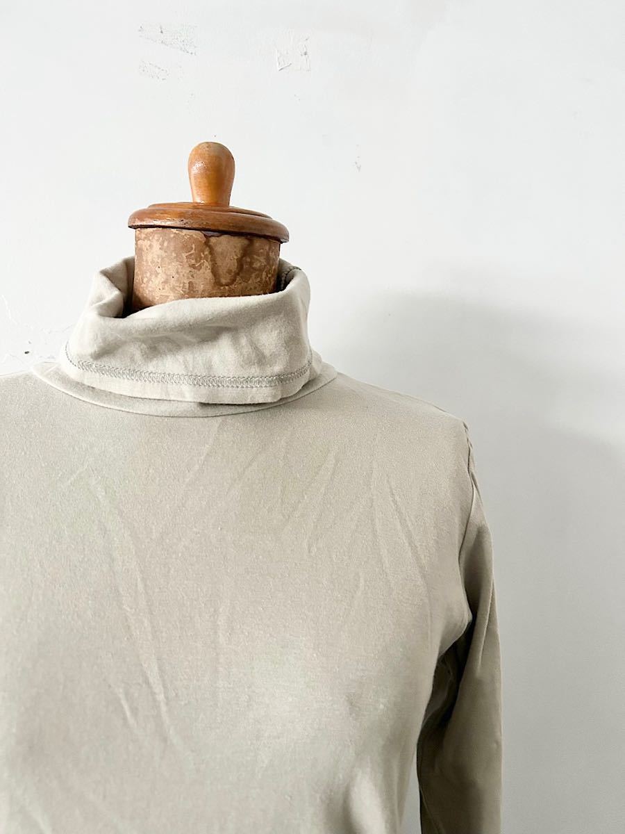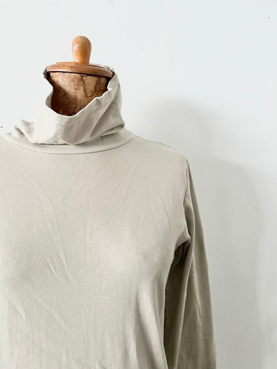 カラーはベージュで上品なコットン素材のタートルネックカットソーです。