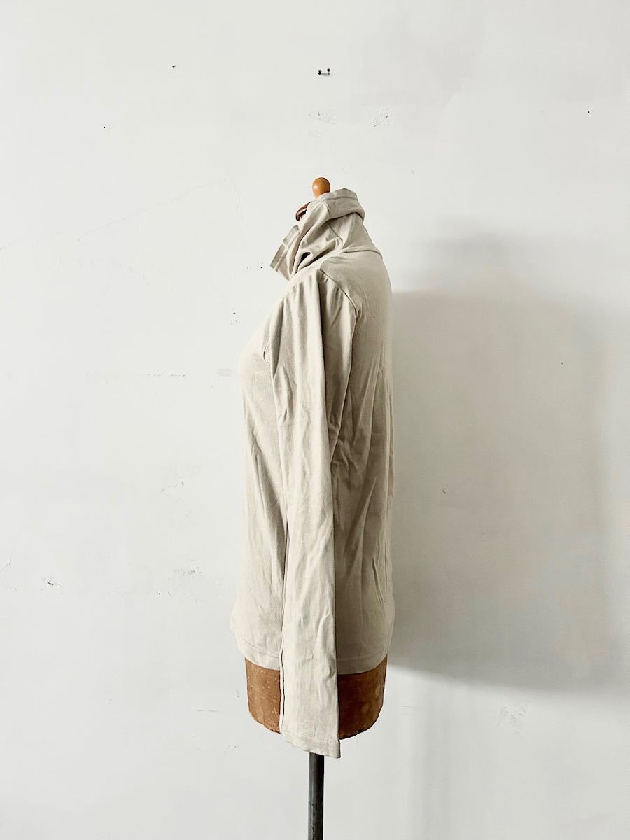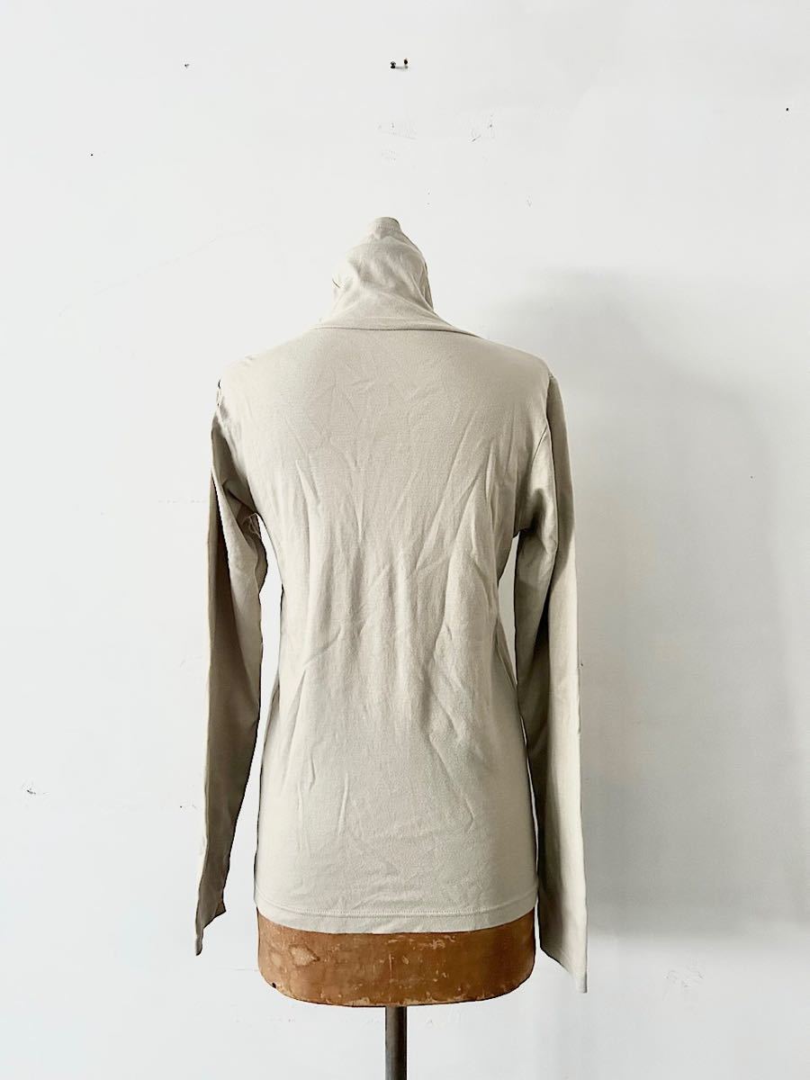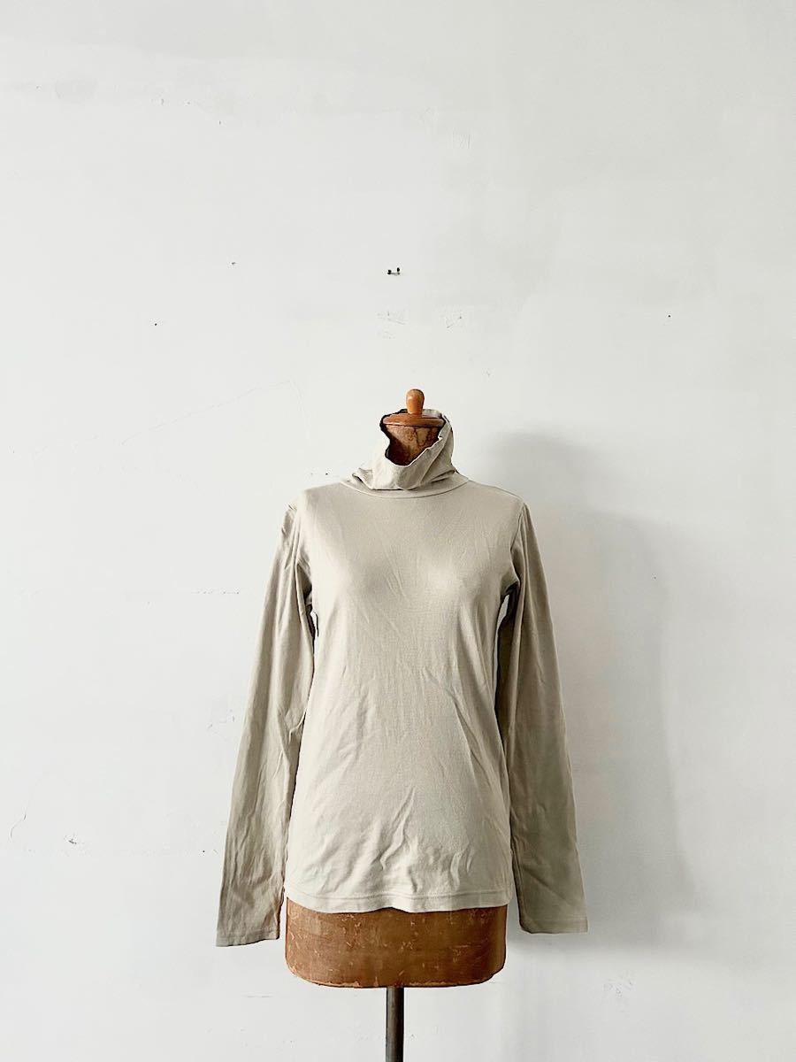 カラーはベージュで上品なコットン素材のタートルネックカットソーです。