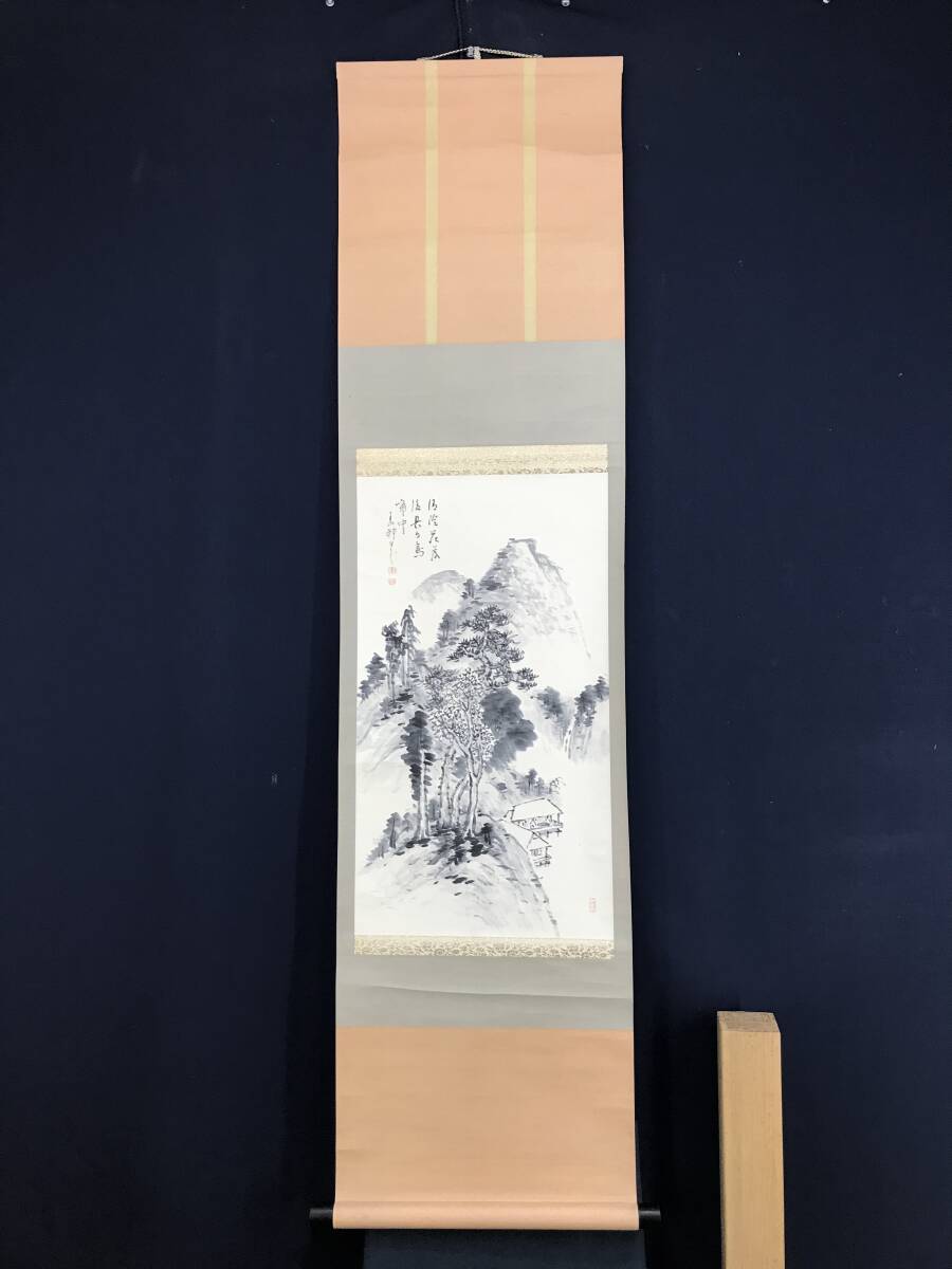 真作/素邨/山水人物画賛/山水図/掛軸☆宝船☆AF-45