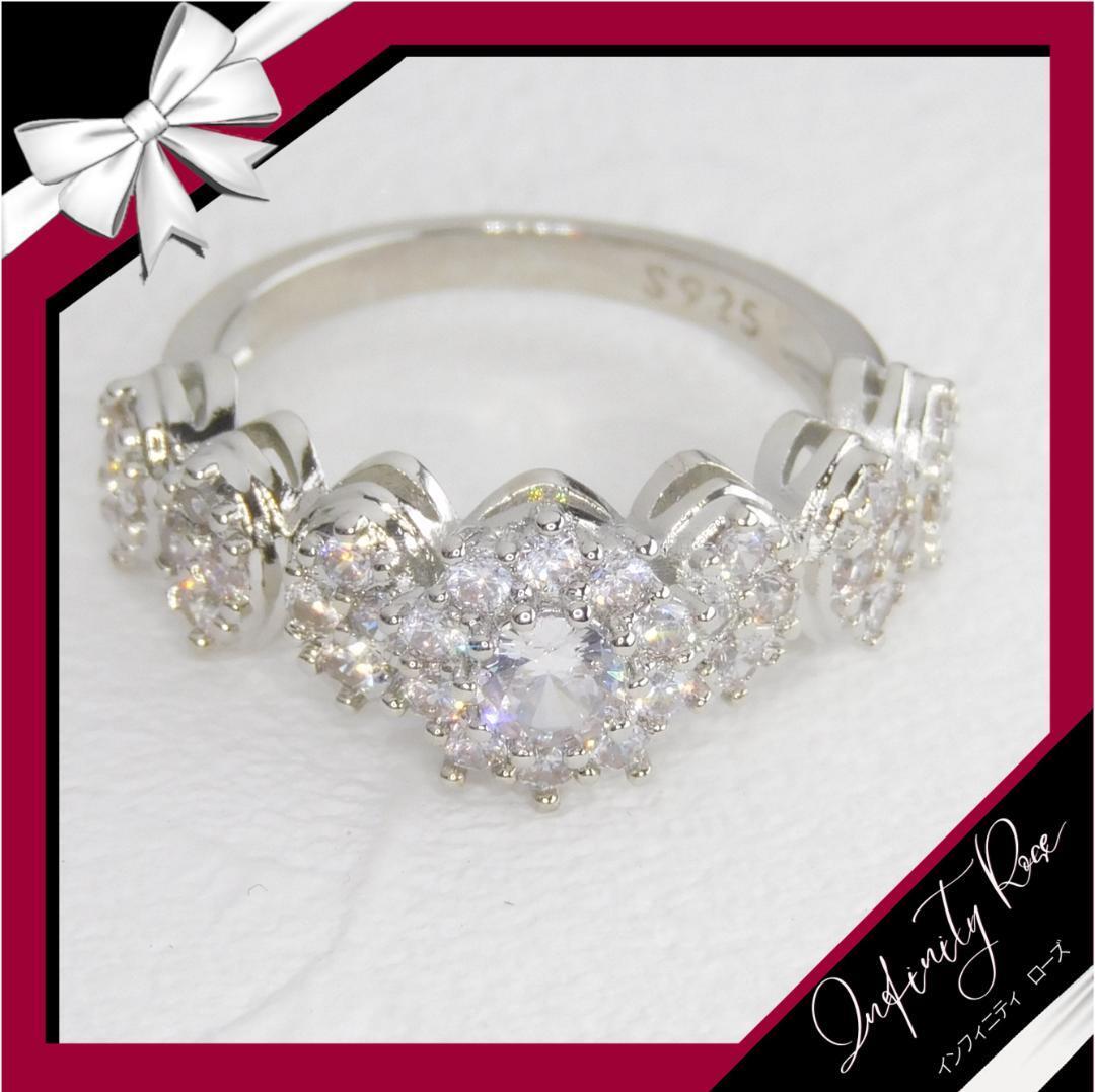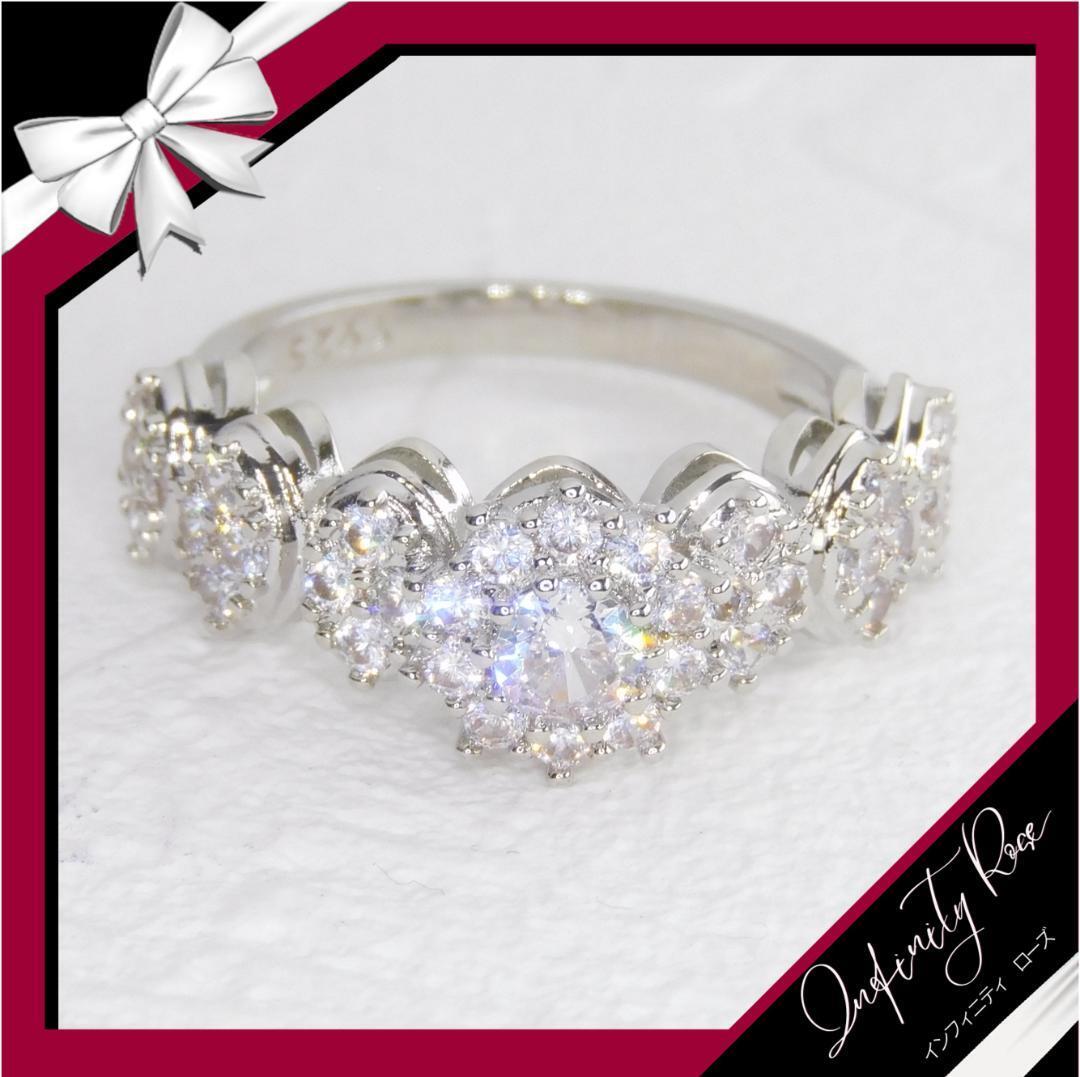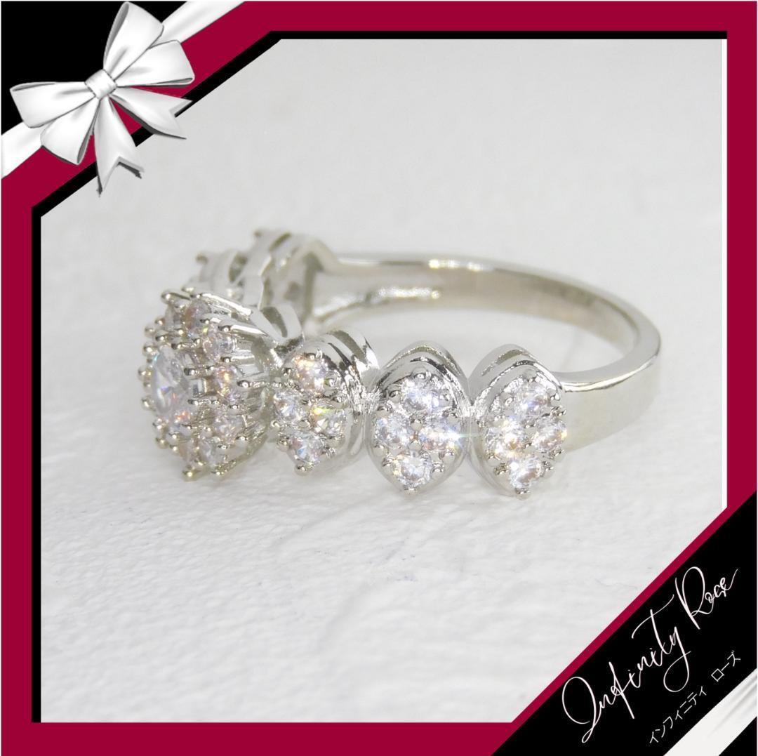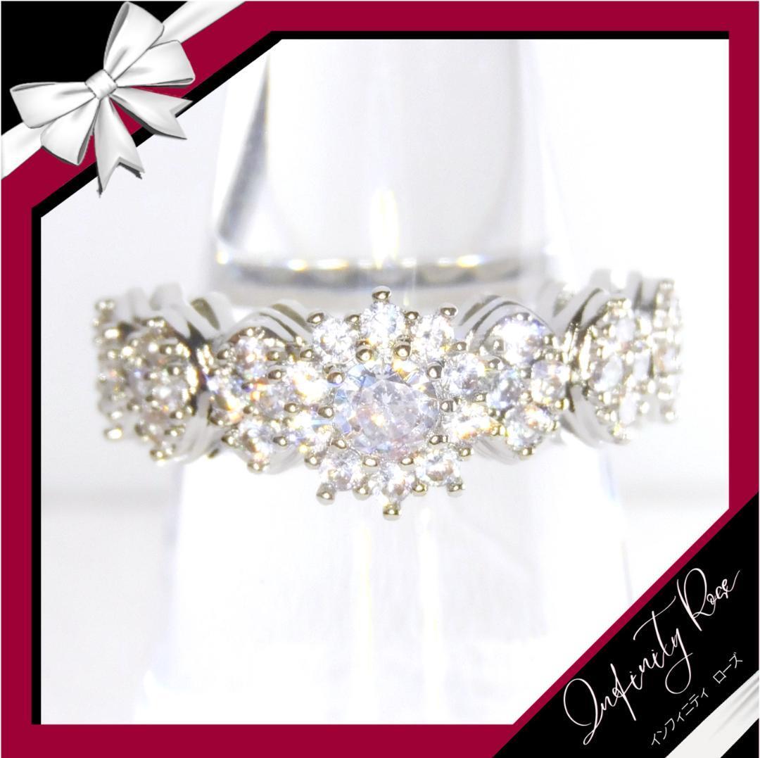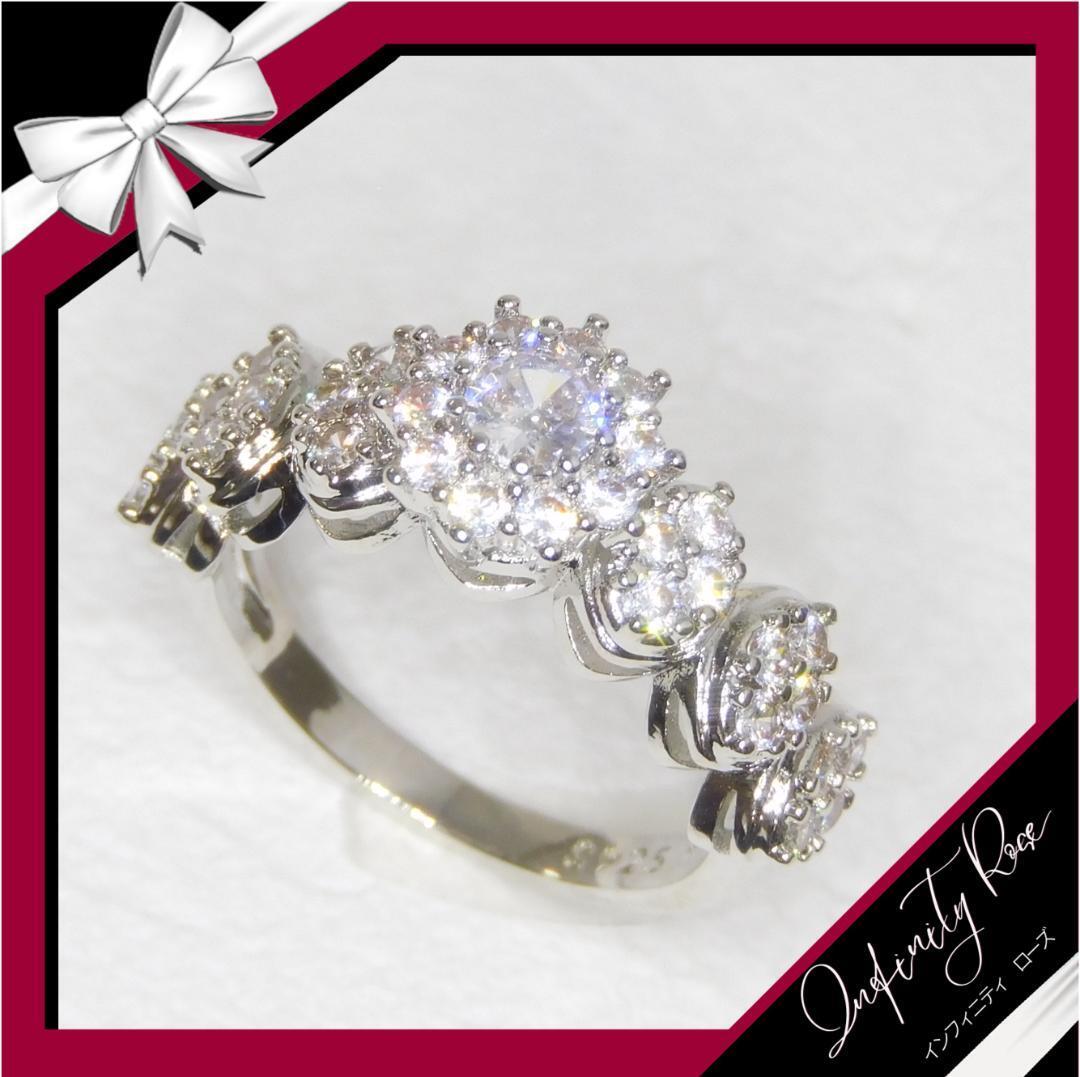 (R058S)12号 ゴージャス高価なクリスタルフラワーリング 高価爪留指輪