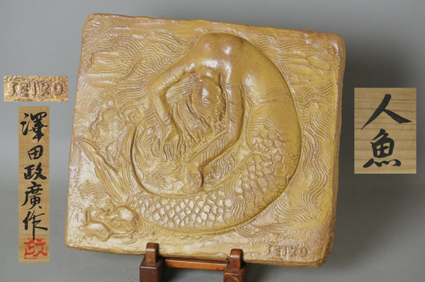 | 【 澤田政廣 人魚 レリーフ 共箱・皿立て付き】 |