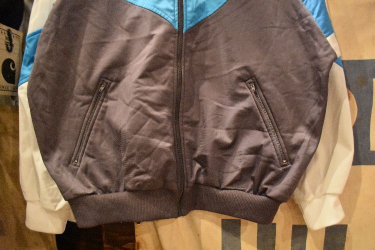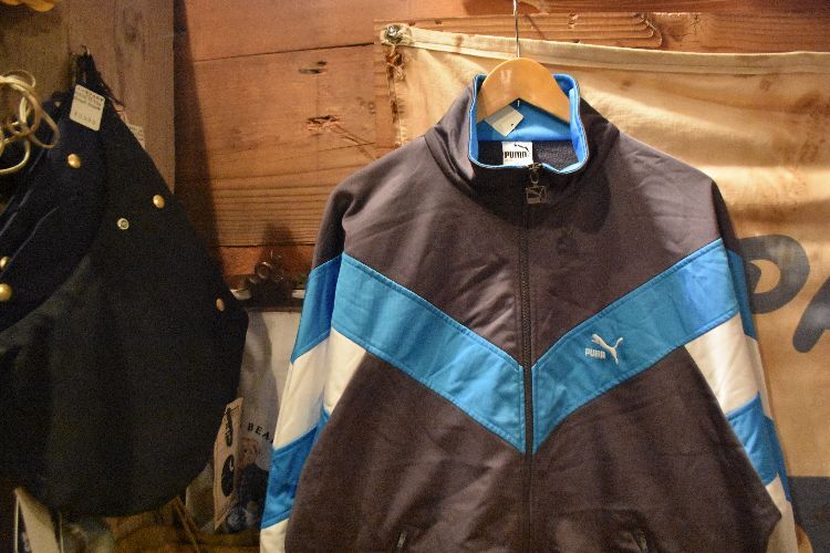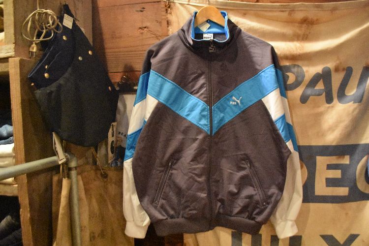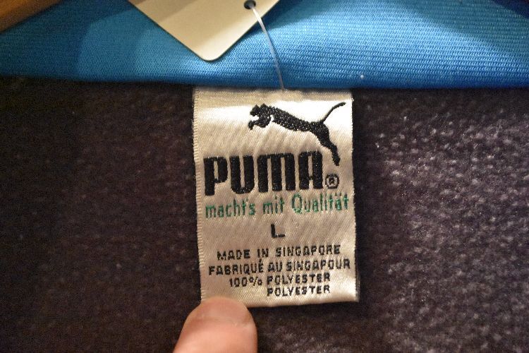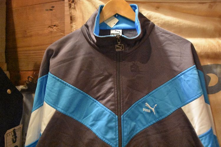 グッドカラーアイテム◎~90sビンテージPUMAプーマ ジップアップトラックジャケットL灰色×水色×白アメカジスポーツストリートn23289