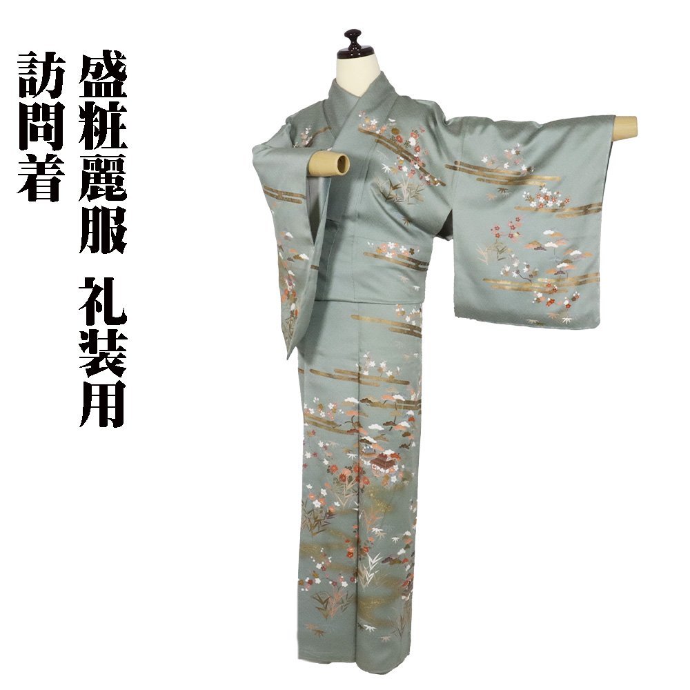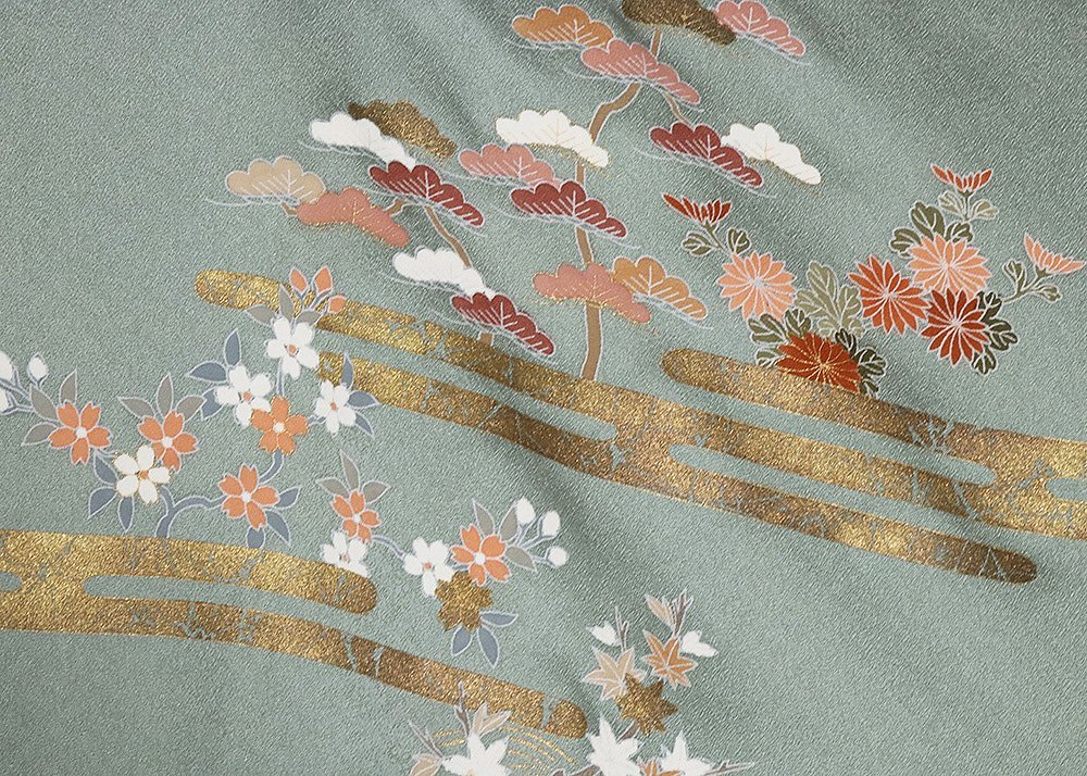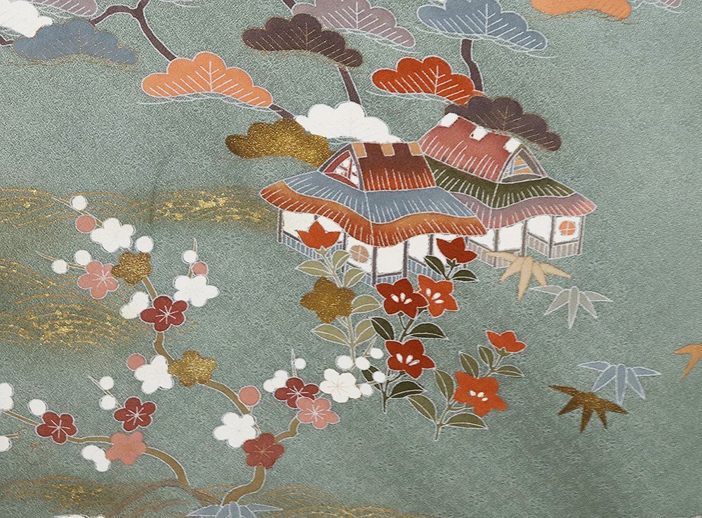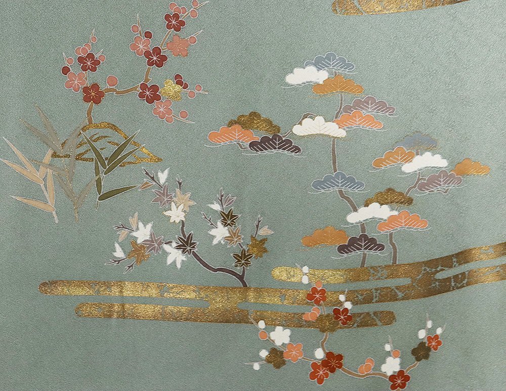 | 色・柄 | 訪問着 袷 丹後縮緬地 緑・菱文地模様地 松竹梅・桜・菊・茶屋辻 金箔霞文 (写真では上手く色が出ない場合があります。ご了承下さい) |