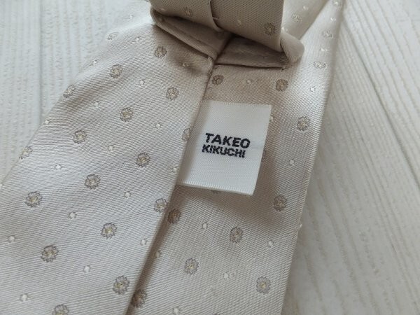 TAKEO KIKUCHI タケオキクチ メンズ 小紋柄 スリット糸入 シルクネクタイ シャンパンベージュ です。