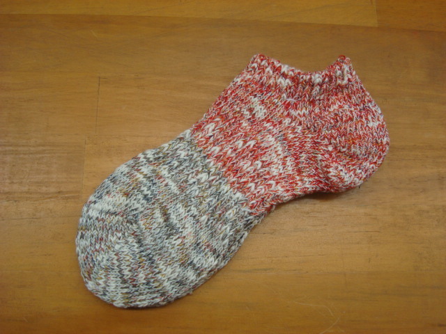 新品Mauna Kea(マウナケア)ソックス スラブネップ切替スニーカー MENS 10462 Redです、正式名は→スラブネップ切替スニーカー MENS 10462、正式カラー名は→Red、素材はCotton 65%Hemp 15%Acrylic 20%です!スラブネップ切替の非常に雰囲気のいいスニーカーソックスです!サイズは25-27cmのワンサイズです!まだお知りでならない方にソックスブランド mauna kea (マウナケア)の説明です!もとは足袋や素足の文化だった日本に、靴下が普及しはじめたのは明治時代。文明開化とともに洋装が一般化し、革靴に合わせて履かれるようになった。そうした需要を受け、明治後期より靴下の生産が盛んになったのが奈良県広陵町である。江戸時代より綿花と木綿の産地だった広陵町は、その背景を活かして海外より靴下用の手回し編み機を導入。大正時代には自動編み立て機も導入され、米作農家が農閑期に行う副業として広まった。戦後の最盛期には、地元の組合に200軒以上の靴下工場が加盟していたという。現在でも国内で生産される約6億本の靴下のなかで、日本有数の靴下の産地である奈良県広陵町はシェア約4割と日本一を誇っているのです。mauna keaで使用しているのは多彩な色糸とネップが不均一に混ざった杢糸。機能性と天然素材にこだわり、吸湿性と速乾性を兼備させるためにコットンにヘンプを混紡した素材です。厚手の生地ですので丈夫で抗菌消臭効果もあり汗を吸収する素材と水分を発散する素材を混合しているので、蒸れにくく爽快な履き心地がオールシーズン持続します!またゴム部分の締め付けを一箇所に集中させず、ゴムの範囲を広くとることでゴムの締め付ける力を分散しています。この結果ゴム部分が蒸れにくく、痒みなどのお肌へのストレスの軽減、 また、ズレの防止効果を実現しました。靴下は筒状に編まれるのですが、編み機の特性上、径の太さは一定になります。そのため、パターンで履き心地を出すには限界があり、編み目と糸の太さが重要になってきます一般的な編み機で靴下を製造する場合、その針数が170本~180本なのに対し、日産80本ほどと規模は小さいながらも、25年以上も前から稼動し続けるこの編み機はその3分の1である60本です。針数60本の靴下は、一般的な180本の編み機よりも編み目に余裕があり、糸も通常より太いものを使うことができる。つまり余裕のある編み目がそれぞれの足のカタチに沿うため、とても履きやすい靴下になるというわけです。編み機が古いものなので日本国内にはほとんど残っていませんが、ザックリとした編み目はこれでしか再現できません。麻と綿の微妙なバランスそして土踏まずを刺激するサポーター履き心地は抜群に良くこの混率が汗を吸い外へ出しあの嫌なベタベタ感が無く何時でもサラサラで快適また丈夫で長持ちも致します。現在は吸湿速乾性をうたった化学繊維の靴下などもありますが、それは天然素材が本来もっている機能を再現したにすぎず、ウールやヘンプでもその特性をうまくコントロールすれば十分快適な靴下はつくれるんです。靴を脱いだ時、こんな靴下はいてたら、素敵じゃないですか?たかが靴下!されど靴下です!色の方は、各パソコン、デジカメによって多少異なりますので、ご了承下さい、ノークレーム・ノーリターンでお願いいたします。ご質問に関しましては、火曜日を除く、午後12~午後9(21)時までに、お早めにお願い致します。この商品以外も、その他、色々出品しておりますので、是非ご覧下さい。