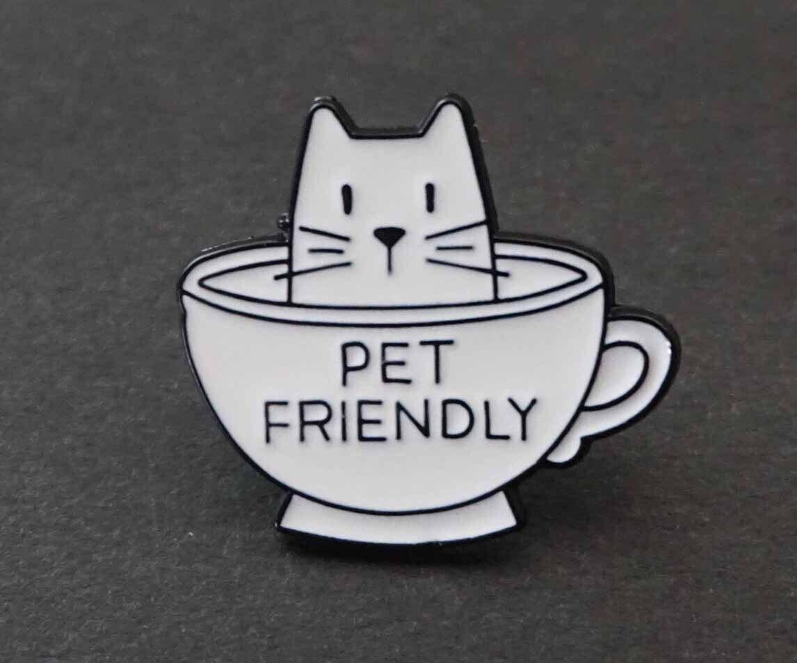 PIN『白ティーカップ風呂猫』■新品 『風呂猫』PET FRIENDLY 萌猫.ネコ CAT■ ねこ好き■ピンバッジ バッチ■おしゃれ ファッション 開運