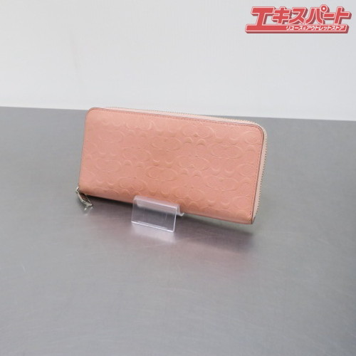COACH コーチ エンボスシグネチャー ラウンドファスナー 長財布 52330 ピンク 前橋店