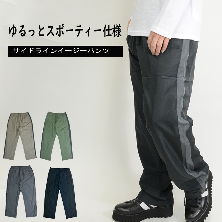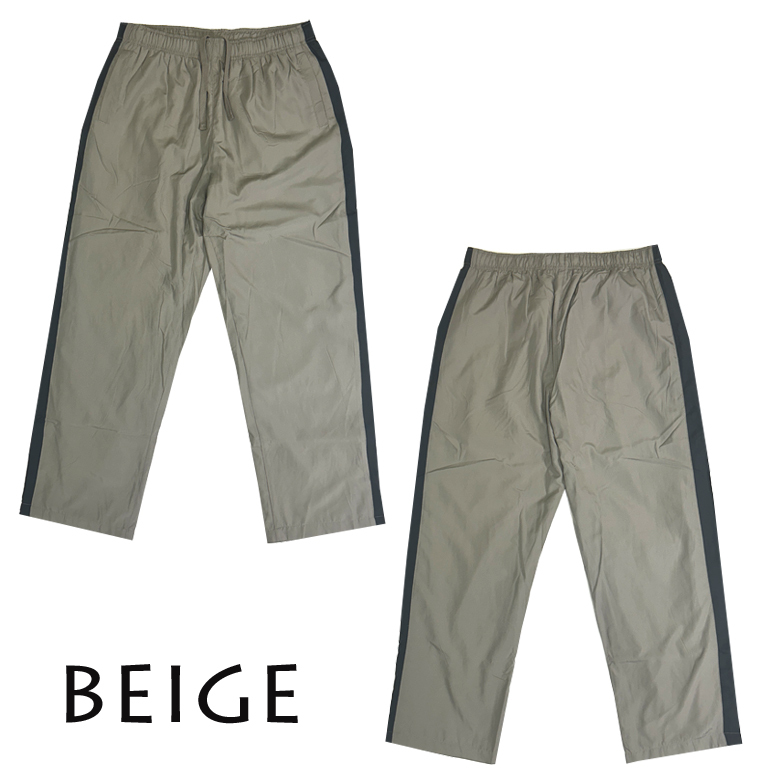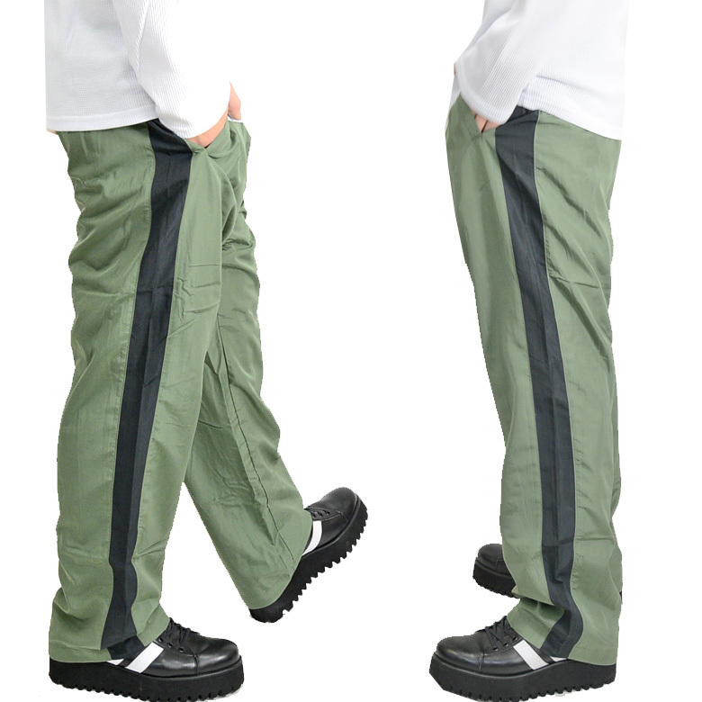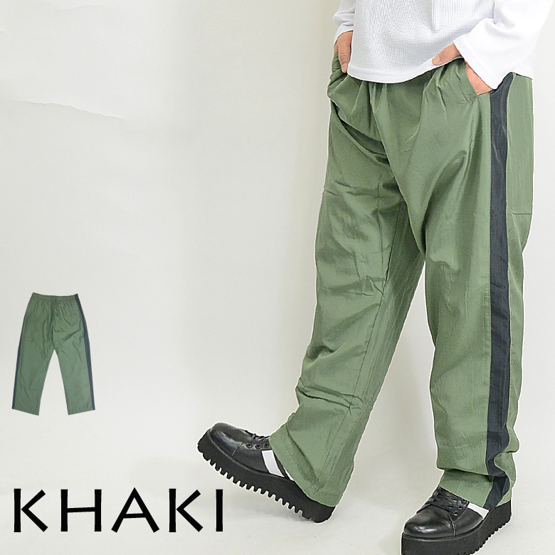 サイドライン ポリ素材ワイドイージーパンツ 28861 メンズ トリコット裏地 パンツ 新品カーキ M