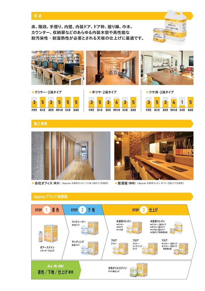 ●溶剤系ウレタンに匹敵する優れた塗膜性能と耐久性を持ち、過酷な条件のカウンター・テーブルの上塗りに最適です!