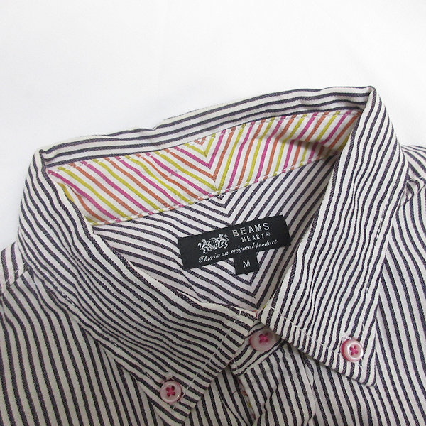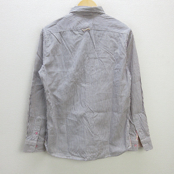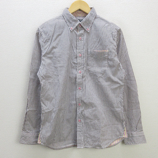 D■ビームス/BEAMS ストライプ長袖シャツ/ボタンダウン【M】白 茶系/MENS/149【中古】
